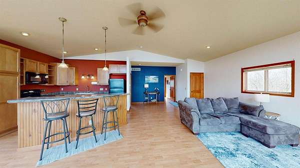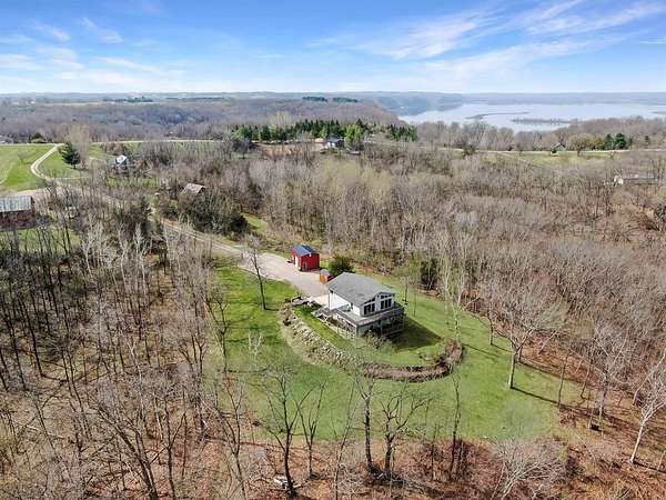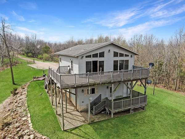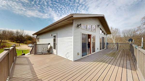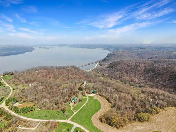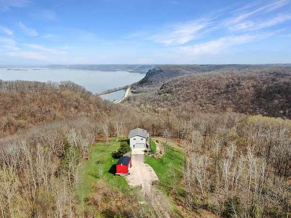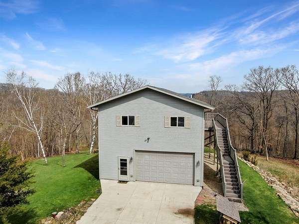 Perched atop the bluffs overlooking the Mississippi River, this Driftless retreat offers the perfect blend of privacy, comfort, and breathtaking scenery. Set on 9 acres, the property captures sweeping river and valley views. Inside, the main level welcomes you with an open-concept living room and kitchen. Large picture windows and sliding glass doors frame the stunning landscape while filling the home with natural light. Step out onto the expansive balcony- perfect for morning coffee, evening sunsets, or simply enjoying the peaceful surroundings. The lower level adds functionality with a two-car garage, a second bathroom, and a laundry area. Whether you're seeking a full-time residence, or a private getaway, this scenic blufftop home delivers unmatched tranquility.