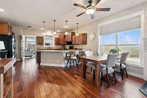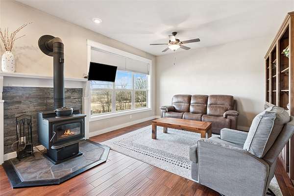 Escape to your own slice of paradise with this remarkable 3-bedroom, 2.5-bath ranch home, nestled on 8.13 scenic acres teeming with timber and hay ground. Over 2,600 sq ft of beautifully finished living space includes a spacious kitchen featuring granite countertops, a sunlit sunroom, flex room on main level perfect for home office, home gym, or non conforming bedroom, and a cozy finished basement with daylight windows. Embrace nature's beauty with breathtaking views and an abundance of wildlife right outside your door. Enjoy outdoor living with multiple decks and patios, perfect for relaxing in peace. The property boasts a massive 5,000 sq ft fenced garden, ideal for gardening enthusiasts. For the hobbyist or creator, a 1,440 sq ft insulated shop awaits, equipped with heated floors and a convenient half bath. The second level features a framed MIL suite, ready for your personal touch. Complete with a three-car attached garage, this home offers the perfect blend of comfort, space, and tranquility. Don't miss this rare opportunity to own a versatile property that truly has it all - schedule your private tour today!