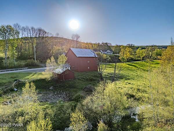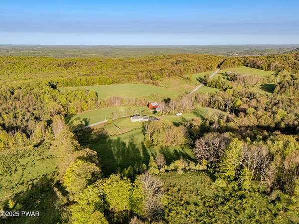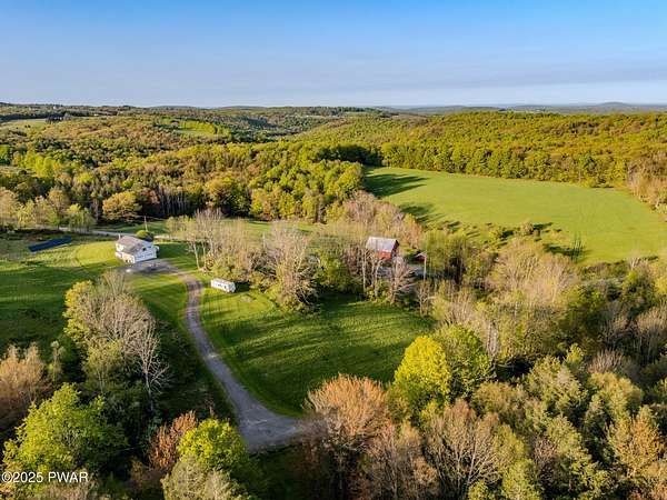 NATURE LOVERS ESTATE - 100 ACRES - STREAM - VIEWS - 2 HOUSES - BARN-Perfect scenic location and long private drive leads to this one of a kind country estate. Experience this magnificent property with breathtaking mountain views from the like-new 3 bedroom, 3 bath ranch home with a large gourmet kitchen, living room and four-season room. This meticulously maintained home boasts 2 inviting porches great for entertaining and a large partially finished basement with a wood stove, full bathroom and maximum storage space.. Not a detail has been missed - all with a large 2-car garage, concrete siding, solar panels, a generator and RV hook-ups. The main house overlooks a modern 3 bedroom 2 bath farmhouse with charming touches, along with a beautiful renovated traditional red barn. Enjoy the blend of open fields and wooded areas and stream running through the land. This special and unique property includes acreage on both sides of the road and all the privacy you can imagine. The long lane leads to the top peak of the property and includes a well and electric for future building dreams. Close to Elk mountain and all nestled on a very special 100-acre natural wildlife habitat with stream, hiking and a blend of rolling fields and mature woodlands. Must see to truly feel how incredible this property is!