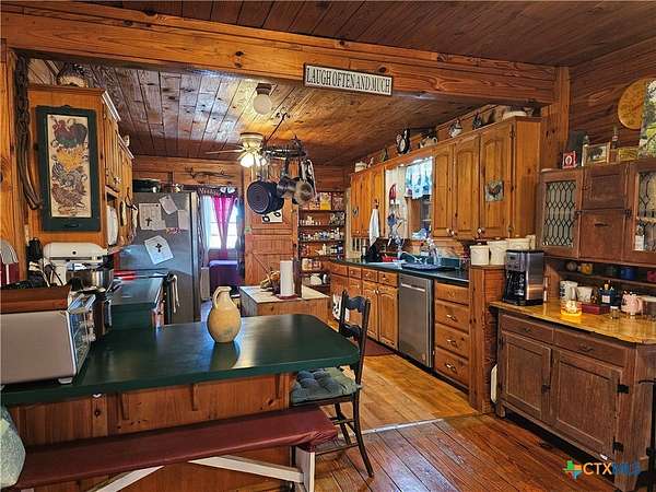 Come experience a breath of fresh air this 171+/- Acres of mixed use, ag-exempt land in Bosque Co. 97mi S of Ft Worth, 115 mi N of Austin, 32 mi NW of Waco, and 20 mi NE of Gatesville. 94+/- Ac. farmland & 76+/-Ac. Rec/grazing. Hardwood construction 2/1 cabin with wood burning stove, open concept living and beautiful woodwork throughout, and composite wood decking. It's the perfect hunting cabin, weekend get-away or homestead! A cute kitchen w/SS app. ample cabinets, canning shelves, and breakfast bar. 2 Cozy BRs. Lg mud-room make great flex room, more pantry space, hobby rm or large walk in closet. Orig part of home was built about 1930's & moved here in 70's then mid 90's the owner added the bath, laundry & open living/dining. Treat yourself to an experience in the $18k safe-step spa! The majestic Live Oak that welcomes you was huge even back in the early 1900's when a couple exchanged vows there making well over 100 yrs old & standing the test of time. Behind the cabin is a large garden area with rich soil, 2 dry wells and a pretty windmill once serviced 170-180' deep well. A 2nd windmill and 3rd well approx 90' deep out in the pasture that may still be produce, but hasn't been used recently so not sure. The soil here is really pretty black dirt and grows things well. Farmland is used for Oats and seller said has harvested 70-80 bushels on good years. The property has full perimeter fencing and farmland is fenced out separate from grazing/recreational land. There is one seasonal stock pond. The grazing/recreational land has heavy tree coverage with lots of mature cedars that could be harvested for cedar posts of all sizes. Located off Old Mosheim Rd and situated at the end of a long drive providing a private & peaceful setting. WB stove and LP wall heaters are the heat sources and window units are installed in summer months for AC. Cash or conventional financing only, being sold as-is. Disclaimer: all measurements, and data is approximate, buyer should verify.