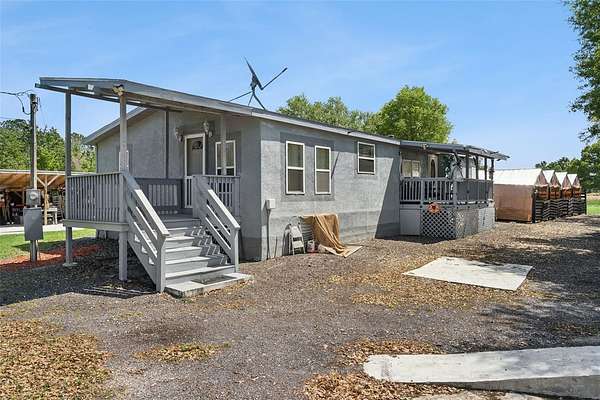 Welcome to your private slice of Central Florida living! Situated on 3.4 acres with NO HOA, this property offers endless possibilities for those looking for space, flexibility, and freedom. Conveniently located just a few minutes off US 33 and within easy reach of Clermont, Orlando, and Lakeland, you’ll enjoy the perfect balance of peaceful country living with quick access to shopping, dining, and major roadways. The 3-bedroom, 2-bath manufactured home features over 1,500 square feet of living space and has been tastefully updated throughout. Enjoy no carpet, with a combination of vinyl flooring and tile for durability and easy maintenance. Multiple decks at each entrance provide the perfect spots to relax and take in the surrounding land. Outside, the property continues to impress with a 4-car covered carport, along with a versatile workshop, storage space, and dedicated sitting area in the back with a fire pit, ideal for hobbies, projects, or simply unwinding at the end of the day. Bring your toys, equipment, and your vision, this property offers the space, freedom, and privacy to create the lifestyle you’ve been looking for.