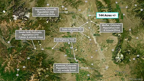 Rare Opportunity to own 144-acre farm with home, warehouse, & state of the art greenhouse. Live/Work on this AG/Commercial property with unlimited possibilities. Perfect fixer upper for handyman with a vision. Ag well has been permitted for use inside the greenhouse or convert back to center pivot for hay production. Located just 4 miles north of Moffat, and right off of HWY 17, this property provides views, privacy, and quick access to the amenities of Saguache, Alamosa, and Salida. Historically, this farm was grazed by cattle and irrigated by a Zimmatic center pivot that covered 63.5 acres. The pivot is included in the sale. The property has a 1999 double-wide mobile home that was remodeled in 2019 and has 5 bedrooms and 3 full bathrooms. Unique to this parcel are the 4 adjudicated artesian water wells, one producing 450 gpm, 2 at 30gpm, and 1 at 50gpm. There are 2 holding ponds on the NW and SW of the property. Built in 2019, this 4-bay 11,800 sq ft greenhouse, features a concrete elevation foundation with concrete sidewalks and loading bays, galvanized steel walls, polycarbonate roof, and completely spray foamed. The building resembles more of an indoor grow with a “greenhouse” style roof and is set up for year-round growing. Inside the greenhouse, there are 4 HVAC units for heating and 3 large wet wall units for cooling. The entire greenhouse complex is adequately vented and lit for ideal growing conditions. From rolling benches, Gavita Pro-E-Series lighting, intake shutters, and exhaust fans, Hunter Irrigation Controller, dehumidifiers, Trident Nutrient System, and an RO / UV light water filtration system, everything needed to grow is in place. There is 3 phase power coming in from power lines right above the warehouse. The heated and insulated metal structure warehouse sits on a concrete slab and is 3,800 sqft In total. The building is furnished with an office & bathroom easily converted to additional living quarters.
