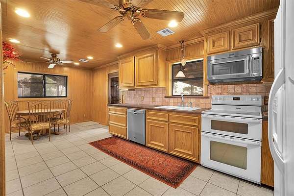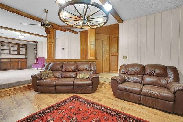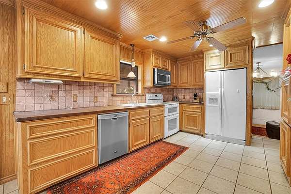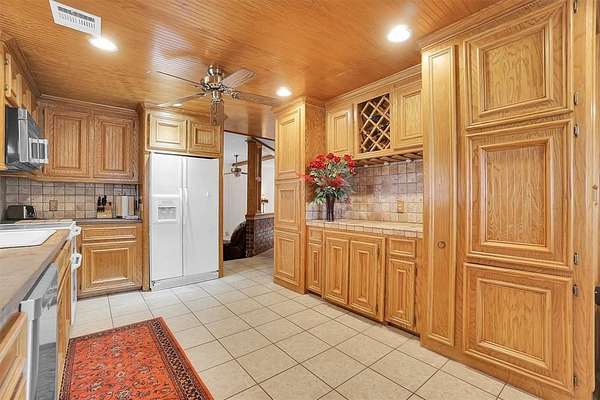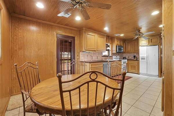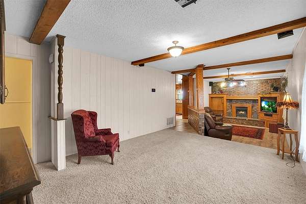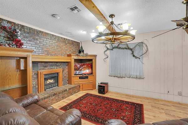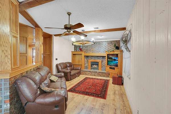 Charming Brick Home on 5 Acres with Option for 75 More - Spacious Living, Stunning Craftsmanship, and Room to Grow! Discover country living at its finest with this beautifully maintained 5-bedroom, 2-bathroom brick home nestled on 5 acres - with the rare option to purchase an additional 75 acres for expanded possibilities. Step inside the kitchen to find a thoughtfully designed interior featuring rich wood trim, custom wood ceilings, and a beautifully appointed kitchen complete with handcrafted cabinetry, a large pantry, and a butler's pantry with cabinetry on both sides. All appliances are included, making this home move-in ready! Relax in the cozy sunken living room with a gas log fireplace, accented by a striking brick hearth and wall and built in cabinets. An additional living room provides flexible space for entertaining or relaxing. The spacious primary suite offers its own private bathroom with a luxurious jetted tub and separate shower for your comfort. Step out back to an incredible patio area built with large cedar logs - the perfect spot to unwind. The property boasts several outbuildings, dog pens, and a massive 50' x 100' barn with pens, ideal for animals, storage, or hobbies. Whether you're dreaming of a hobby farm, a private retreat, or expanding into more acreage, this property offers endless potential and timeless charm. Don't miss your chance to make it yours!