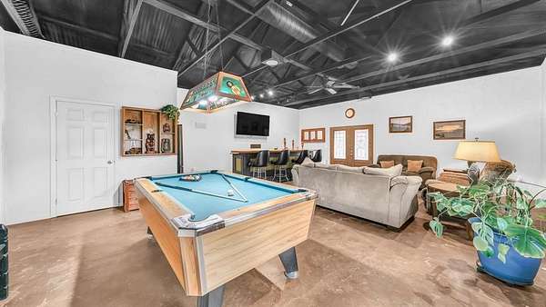 - Covered Patio/Porch, Fence, Outdoor Shower, Private Entrance, RV Hookup, Rain Gutters