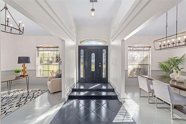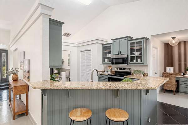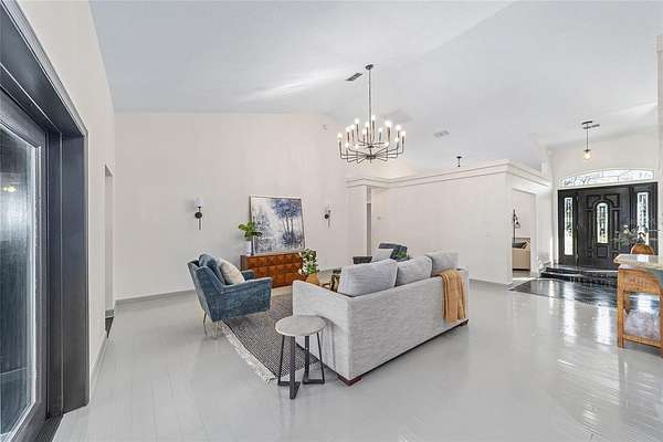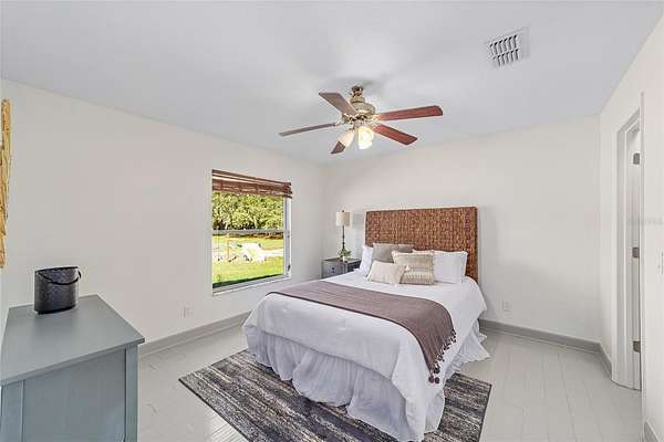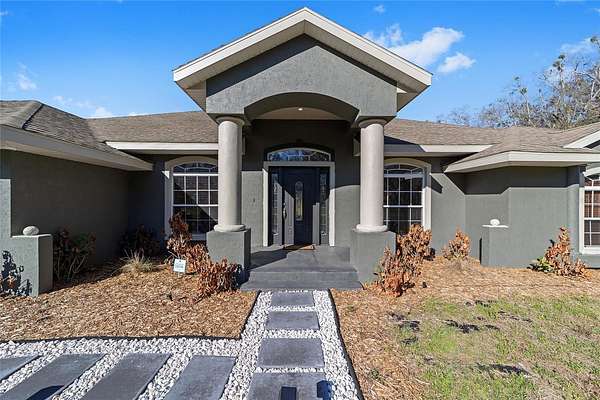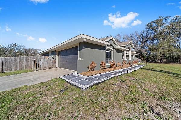 Experience modern country living in this beautifully reimagined concrete block home in Brooker, FL--just 20 minutes from Gainesville. Set on a sprawling, picturesque lot, this move-in-ready retreat combines sturdy construction with elegant upgrades and peaceful surroundings, making it an ideal choice for buyers seeking both comfort and style. Step inside to discover a brand-new kitchen featuring stainless steel appliances, cool-toned cabinetry, and sleek countertops, seamlessly connected to a charming breakfast nook--perfect for morning coffee or casual meals. The open-concept layout flows into an elegant dining room illuminated by a sculptural light fixture, a stylish front parlor ideal for entertaining, and a sunlit living room anchored by a dramatic chandelier. The dedicated operations nook offers a convenient space for a home office or creative pursuits, catering to today's flexible lifestyle needs. Retreat to the serene primary suite with a coffered ceiling, spa-like ensuite bath, deep soaking tub, dual vanities, and an oversized walk-in shower. Additional bedrooms provide comfort and privacy for family or guests. Enjoy the tranquility of your private countryside haven with endless opportunities for gardening, outdoor entertaining, or simply relaxing in nature. A brand-new water pump ensures modern convenience and peace of mind. With its striking facade, thoughtful architectural details, and prime location near Gainesville, this Brooker, FL home is the perfect blend of modern elegance and country charm. Don't miss your chance to own this exceptional property--schedule your private tour today and discover the best of North Florida living!