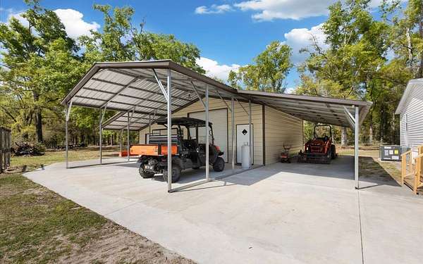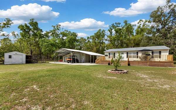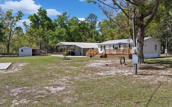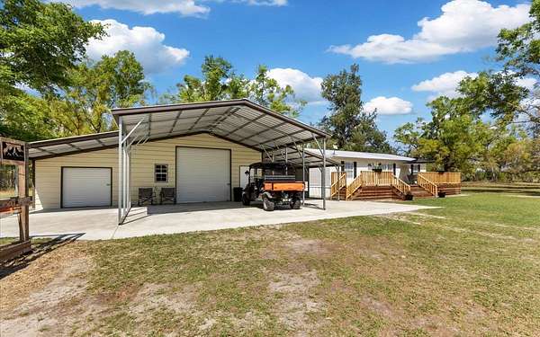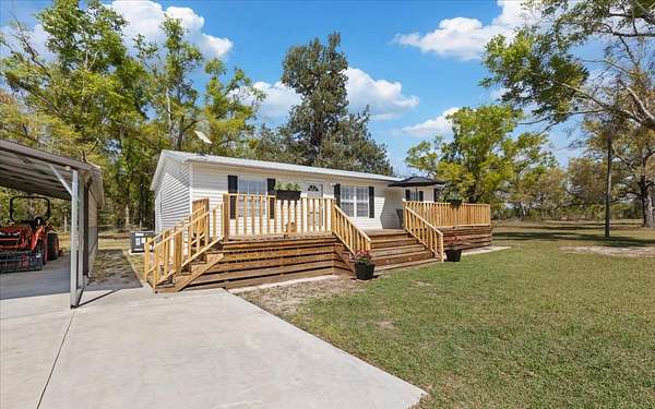 19.74 acres of North Florida country living offering privacy, flexibility, and major updates already completed. This well-maintained 2005 manufactured home is move-in ready and features updated flooring and baseboards (2025), a new HVAC system (2025), roof replacement (2024), water heater replaced (2026), and fresh interior paint throughout. The property is thoughtfully set up for both function and lifestyle, with expansive partially cleared acreage and perimeter fencing with a manual entry gate. Property highlights include a 36x30 workshop with concrete slab and 200-amp panel, a carport with space for up to four vehicles, a 12x12 shed, and a 6x12 chicken coop. No deed restrictions, no HOA and in flood zone X. If you’ve been searching for acreage with functional improvements and room to live the North Florida lifestyle, this property is ready for you.