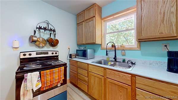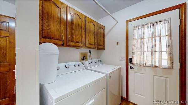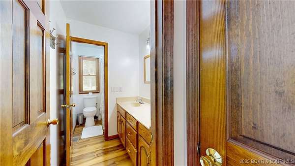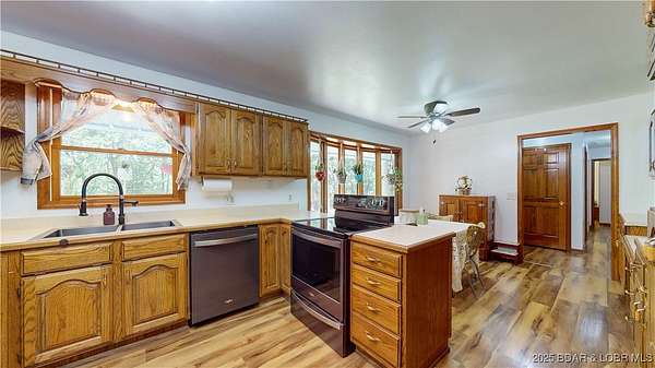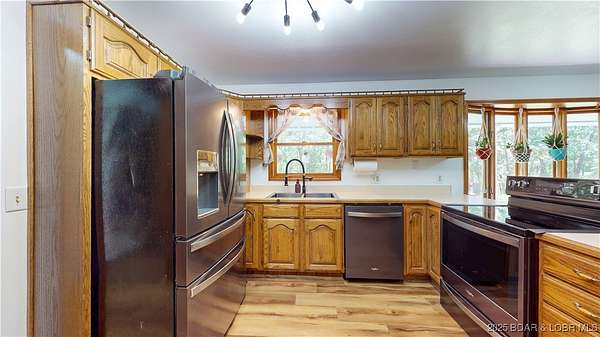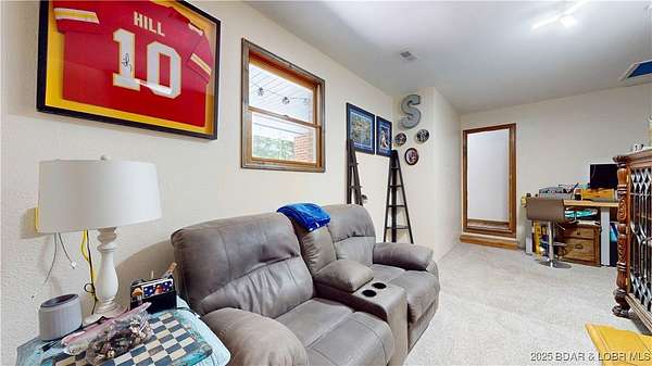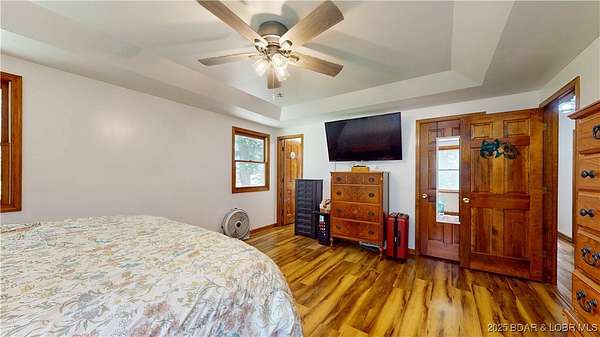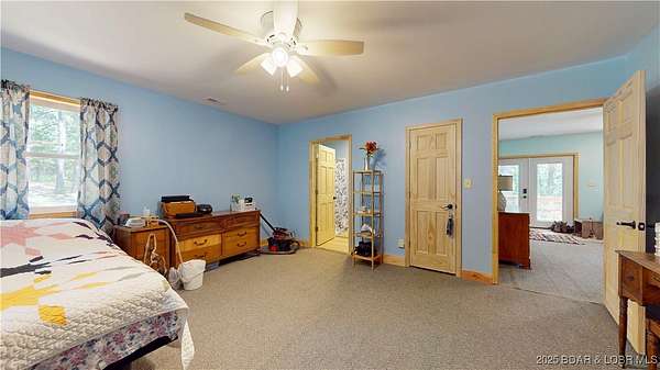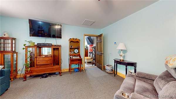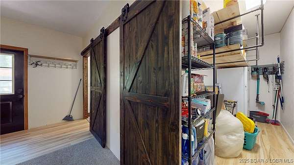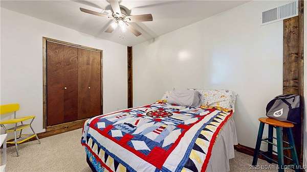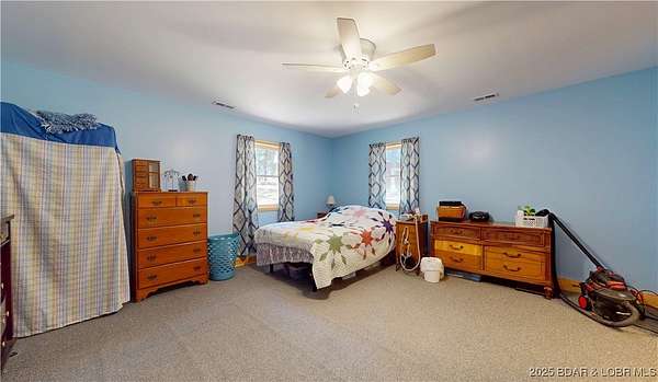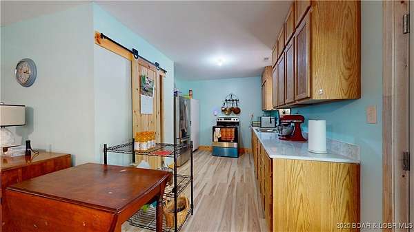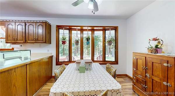 Nestled on a 22.99-acre lot with lush timber and wildlife, this ranch-style home offers privacy and convenience, minutes from downtown Warsaw, Lake of the Ozarks, and Truman Lake. It features dual living quarters on one floor, ideal for multi-generational living or guests. The original layout includes a cozy living room, 4 bedrooms, and 2.5 bathrooms. The large eat-in kitchen has ample cabinetry and a dining area with a bay window. A recent remodel added two bedrooms, a full bathroom, a family room, and a laundry room. The addition also includes a "Man Cave," walk-in pantry, and office/media room, with access to the crawl space, water heater, and water softener. Energy efficiency is highlighted with ground source heating and cooling in the original section and separate heating and AC in the remodeled attic. The home has a new roof and septic system for peace of mind. In total, the home offers 6 bedrooms, 3.5 bathrooms, 2 kitchens, 3 living areas, a pantry, and 2 dining areas. The detached garage/shop measures 24' x 36', with heat, and 220 service. The property also includes a chicken house and pen, and a rabbit house, perfect for nature enthusiasts and animal lovers.