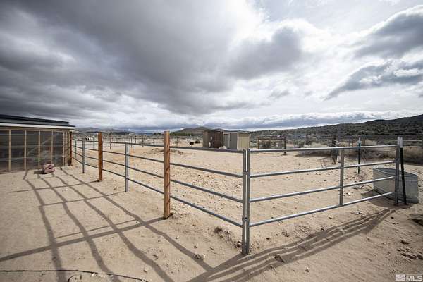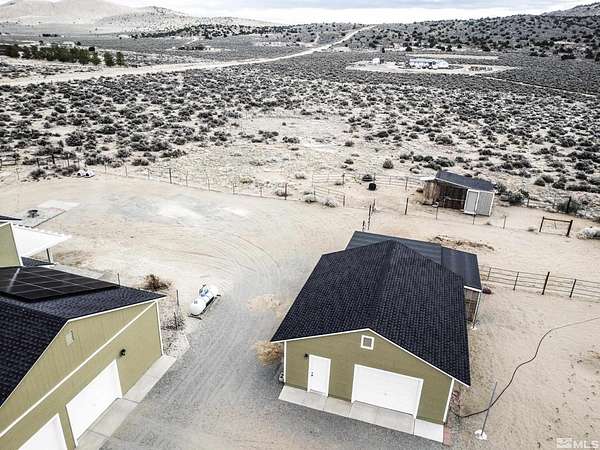Welcome to your dream home nestled in the heart of nature! This fully renovated, 2,392 sq. ft. modern rustic retreat is the epitome of serene country living on over 9.5 acres. With 4 spacious bedrooms and 3 full bathrooms, this home is ideal for families or anyone seeking a tranquil escape. Sustainability features include fully owned solar panels, a power wall, and an EV charger. Relish endless hot showers with a tankless water heater and enjoy individual comfort with mini-split HVAC units in each room. Plantation shutters and an electric fireplace add a touch of elegance to the interior of the home. The expansive covered rear patio and the inviting wrap-around front deck provide the perfect setting for al fresco dining or simply soaking in the breathtaking views of Fred's Mountain. For the hobbyist or auto enthusiast, the detached garage offers flexible space for storage, tandem parking, or a workshop. Attention horse lovers. There is a loafing shed and fencing, ready for your equestrian activities. Also, a chicken coop awaits to bring the joys of farm-fresh eggs to your table. The freshly painted exterior and new roof, installed in October 2024, highlight the home's curb appeal. Situated close to BLM land, outdoor enthusiasts will revel in convenient off-road trail access for weekend adventures. Discover the perfect blend of privacy, modern amenities, and natural beauty in this enchanting semi-rural property just 30 minutes from downtown Reno. Be sure to view the virtual tour!