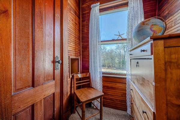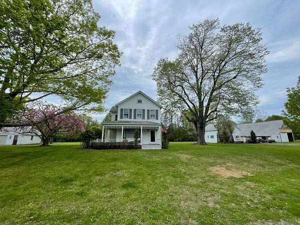 Southold, North Fork: The historic Boisseau farmhouse, built around 1890, is situated on 1.75 acres (76,230 square feet) with R40 residential zoning, in a picturesque setting featuring mature trees and a sprawling lawn. The property is adjacent to fallow, and partially wooded acreage owned by the Town of Southold. The traditional home boasts a charming covered front porch, an entry foyer, and a spacious living room with a fireplace. The dining room can function as a den and includes pocket doors. The primary floor also offers an eat-in kitchen, a laundry room/pantry, a 3-season room, a full bath, and a back staircase. Upstairs, you will find three large bedrooms and another full bath. The farmhouse retains historic character and details, including original wainscoting, paneled doors, windows, and hardwood floors. Various unique features from a bygone era include a laundry chute, a built-in medicine cabinet, bench seats and cabinets, and a sewing room or nursery that could also serve as a walk-in closet. Additionally, the property includes a two-car garage, a post-and-beam barn (which previously hosted generations of local school dances), a large two-story workshop, and a tool shed, along with the 'tower' of the windmill that once pumped water for the farm. With approximately 200 linear feet of road frontage, this home offers substantial privacy and is ideal for those seeking a true North Fork residence within a village setting with access to Southold Park District amenities including use of the Wharf House. You can have it all at 2055 Boisseau Avenue, with room for a pool or tennis court, horses, or small-scale farming. The barn can accommodate multiple boats or cars. Follow your dreams and explore this incredible opportunity! www.2055Boisseauavenue.com