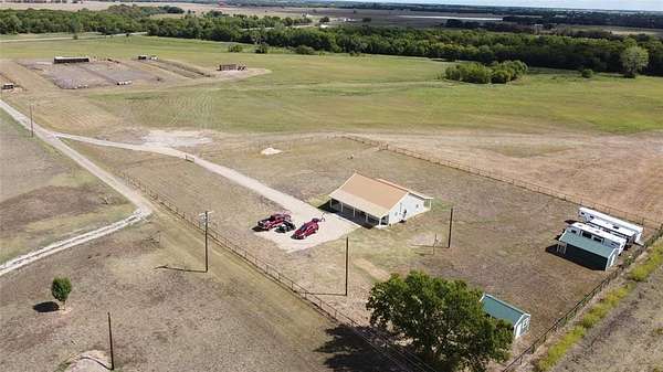 Amazing opportunity to own acreage that is fully set up for livestock. Boasts a precious, move-in ready home! More than 53 acres of fenced and cross fenced property bordered on the east by W Fork Jernigan Creek. Private pond surrounded by shade trees, storage buildings, animal pens and shelters, workshop, shed, and plenty of room for play and exploration. Lovely pastures that provide hay and wandering room for the livestock. Beautiful views throughout the home that bring the outside in for those days weather keeps you inside. Road frontage on CR 2068 for easy access. Long drive up for privacy. Hunting, fishing, lake activities in all directions nearby. The new Ralph Hall Lake in Ladonia will be a destination like no other! Within 1 hour from Lakes Cooper, Monticello, Cypress Springs, Fork, Tawakoni, Lavon, and Ray Hubbard. Great hub for hunters and fishermen-women!