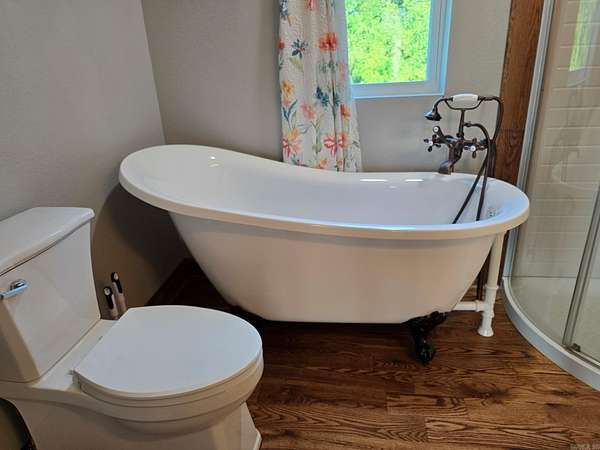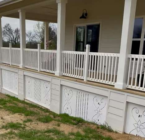 This is an absolute dream house situated on 11.10 acres. It features a charming guest house that includes a full bath and is both heated and cooled. Enjoy your morning coffee on the spacious front porch while taking in the stunning sunrise and breathtaking pond view. You can store your zero-turn lawn mower in the small barn located near the house. The main house, completed in early 2025, showcases beautiful Arkansas red oak hardwood floors and elegant marble kitchen countertops imported from Greece top off the custom cabinets. Relax in the lovely claw-foot tub after a long day. The single garage door is tall enough to accommodate a horse trailer or a large truck. There is a large bonus room upstairs, finished with heat and air, just nees painting and a stair railing. The is enough pasture for a small farm operation for horses or livestock. Living in this rural area offers the tranquility of farm life while still being conveniently located just a mile from local amenities. As you arrive home at night, you'll be greeted by the custom-designed art under the porch, beautifully illuminated from behind, adding a whimsical charm to this enchanting home.