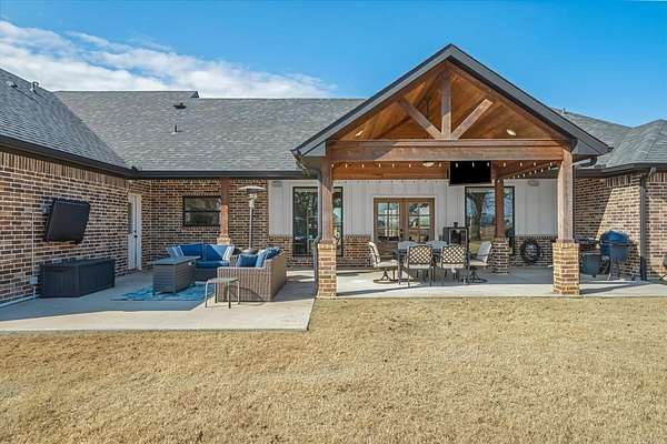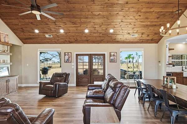 This STUNNING CUSTOM BUILT HOME truly checks every box--space, style, and an ideal layout for entertaining! Thoughtfully positioned on a 2.3 acre OVERSIZED LOT, one of the largest in this section of the neighborhood, this 3 bedroom, 3.5 bathroom property offers privacy, flexibility, and room to grow, both inside and out! The OPEN FLOOR PLAN is designed for connection and comfort, anchored by a show-stopping custom wood ceiling in the main living area that adds warmth and architectural character you've been dreaming of! The spacious kitchen features a large center island ideal for gatherings, meal prep, or casual dining, and flows seamlessly into the living and dining spaces making it perfect for hosting everything from holidays to everyday get-togethers! The primary suite offers a peaceful retreat with a well-appointed bathroom featuring a DOUBLE VANITY, ample storage, and a functional layout designed for ease and relaxation. Guest bedrooms are thoughtfully arranged while a separate half bath provides convenience for visitors without disrupting bedrooms! A versatile bonus room provides endless options and can easily serve as a MOTHER IN LAW SUITE, MEDIA ROOM, OR PRIVATE OFFICE offering flexibility to meet changing needs and lifestyles. Step outside to the HUGE COVERED BACK PORCH, an entertainer's dream and the perfect extension of the living space! Whether hosting large gatherings, enjoying quiet mornings, or taking in evening sunsets, the expansive backyard and acreage provide a rare sense of space and tranquility. The oversized lot offers endless possibilities--room for a pool, shop, garden, or simply open space to enjoy. Schedule your private tour TODAY!