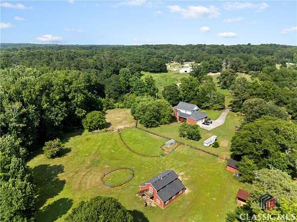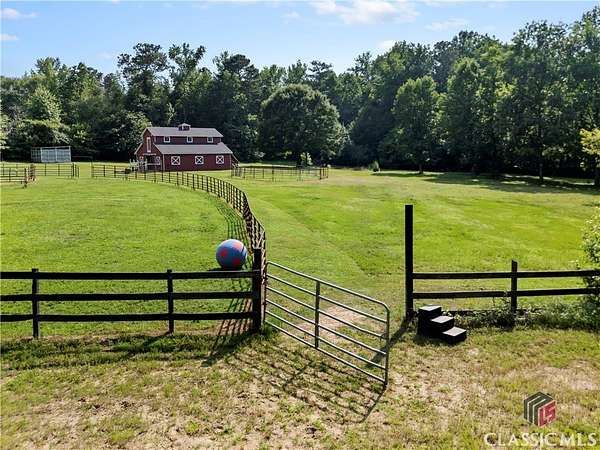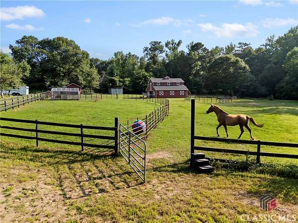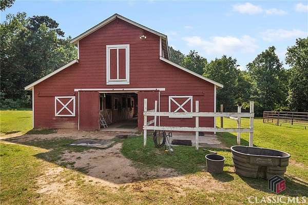 Classic Southern charm meets elegant equestrian or hobby farm living on this 34 acre estate. This beautifully crafted, traditional 4-sided brick home offers 3575 sq. ft. of comfortable, functional living space, 4 br - including a main level primary suite - 4 full ba, and a 1/2 ba. Thoughtfully designed for both everyday living and entertaining, the home is surrounded by gently rolling pastures in a peaceful country setting. Equestrians and hobby farmers alike will appreciate the well appointed 5-stall barn, with a wide center aisle, tack room, wash rack, and hayloft. There's are 4 large pastures with plenty of room to add more; a creek along the rear of the property, beautiful trails for riding or hiking, and a sand arena that's perfect for training or recreation. Tucked among other large-acreage properties, this idyllic farm offers the best of all worlds - rural tranquility, but just minutes from the charm of Olde Town Conyers and with easy access to Atlanta via I 20.