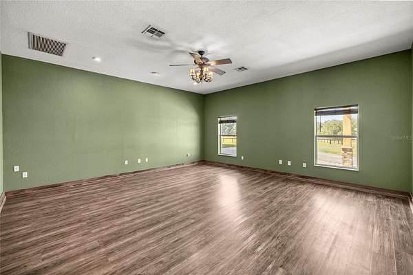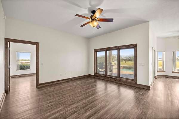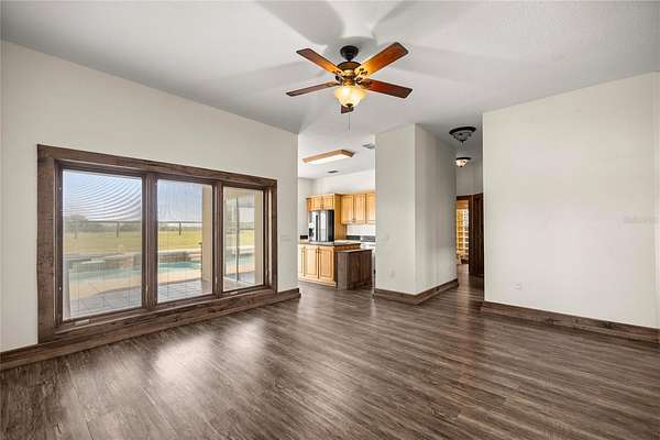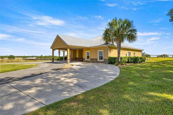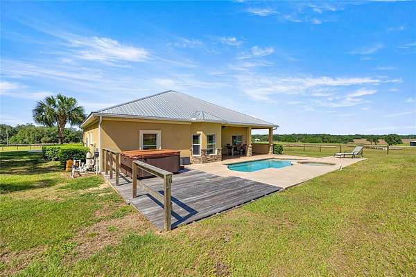 Breathtaking farm surround by absolutely stunning views! This 10-acre ranch is perfect for a cattle or horse farm. Located about 20 minutes from WEC and HITS, this gives you the feel of privacy and country living while being just minutes from everything. The 3-bedroom, 2-bath home has LVP floors throughout, hand hewn hickory base boards and Pella wood windows in the living room overlooking the gorgeous pool area. a BRAND NEW AC was installed in 2025 and the METAL ROOF was added 7 years ago and the GARAGE ROOF is only 2 years old. The kitchen has 2023 Dishwasher and Range and a 2025 Refrigerator that with hickory cabinets and granite counters for a beautiful, rich look. There is also a dedicated office and an oversized GATHERING AREA which is perfect for family gatherings. The pool area and lanai are truly perfect. Sit on the covered lanai and listen to the pool waterfalls while looking at the storybook views. Pool pump and filter are only 5 years old. And the jacuzzi stays with the home for those achy muscles after a day of riding and farming. The 53'x40', 3 bay garage is a CAR LOVER'S dream!! Plenty of room for farm equipment and even a car lift for the true gear heads. There is also an air-conditioned office and storage area in the garage. The no climb fence and nutrient rich soil is the perfect recipe for whatever you can dream up! Come experience this magnificent property!!