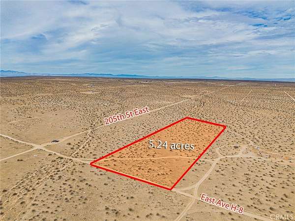 Discover 5.24 sprawling acres in the peaceful Hi Vista area of Lancaster--an ideal opportunity for anyone seeking wide-open space, natural beauty, and future potential. This rectangular parcel, APN: 3342-010-008, Los Angeles County, offers approximately 334 feet of frontage on East Avenue H-8 and sits just off 205th Street East, providing convenient dirt-road access while maintaining the quiet seclusion the High Desert is known for.