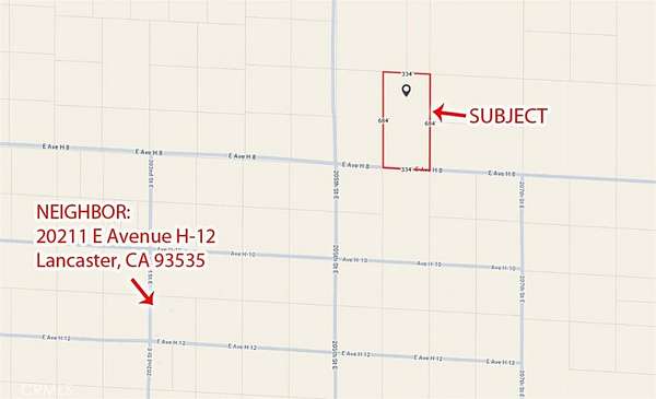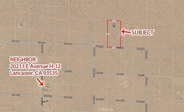 A great opportunity to own your own piece of the Antelope Valley so come explore the possibilities today by using the neighbor's address, 20211 E Avenue H-12, Lancaster, CA 93535, then use the Southwest corner GPS coordinates: 34.712445, -117.764124.