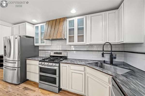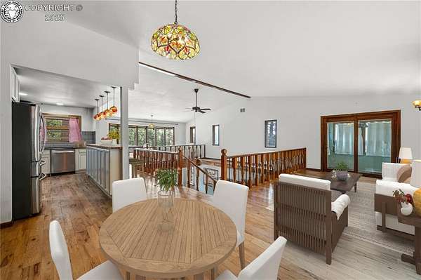 Tucked in the foothills just west of Wetmore, this 4-bed, 2-bath ranch home with full walk-out basement sits on 2.83 acres that borders National Forest and includes a seasonal stream. A rare find with both privacy and convenience, the home offers over 2,700 finished square feet, hardwood and laminate flooring, a spacious main-level primary bedroom, and multiple living areas. Large windows and a cozy sunroom bring the outdoors in with peaceful views of trees, hills, and wildlife. The kitchen includes a breakfast bar, vented gas range, dishwasher, and refrigerator-everything you need to cook and entertain. The nook, dining room living room overlook the downstairs family room with a wood-burning fireplace insert. Also, downstairs offers two bedrooms, 3/4 bathroom, laundry area, and bonus space for office, guests, or hobbies. Heating options include propane hot water baseboards, wood stove, and supplemental electric-plus ceiling fans for comfort. A huge bonus is the 1460SF garage/workshop at 20604 Hwy 96 (included with the property), perfect for tools, toys, or a home-based business. The fenced backyard offers space for pets or gardening, and there's plenty of RV parking and room to roam. With no HOA and Custer County zoning, you have freedom to use the land your way. This quiet location is just minutes to Wetmore, Florence, and access to major routes. Surrounded by nature with direct trail access, this is home for anyone looking for mountain living with practical features, flexible space, and unbeatable access to the outdoors.