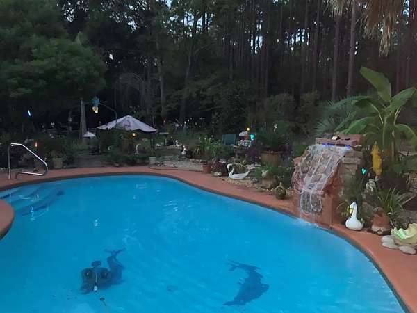 This home is so unique and welcoming. Nestled in 5 acres of woods, let's take a tour as we cross over the creek bridge and welcome ourselves home. This beautiful 3-bedroom/3.5-bath brick home is in immaculate condition. The interior features a large master suite downstairs, his and hers bathrooms, an office, library area, open living room with a stone fireplace and wood-burning stove that adjoins a chef's kitchen with island, pantry, tons of storage, top-of-the-line appliances, granite countertops, and breakfast and dining rooms. From the beautiful foyer, we go upstairs where we have 2 spacious guest rooms and a full bath. Now it's time to travel outside to a covered porch overlooking a custom-made inground pool with waterfall, lush landscaping, and a 2-car garage. You don't want to miss out on this beautiful home. Call Maggie at 912-245-8288 to set up your appointment today.