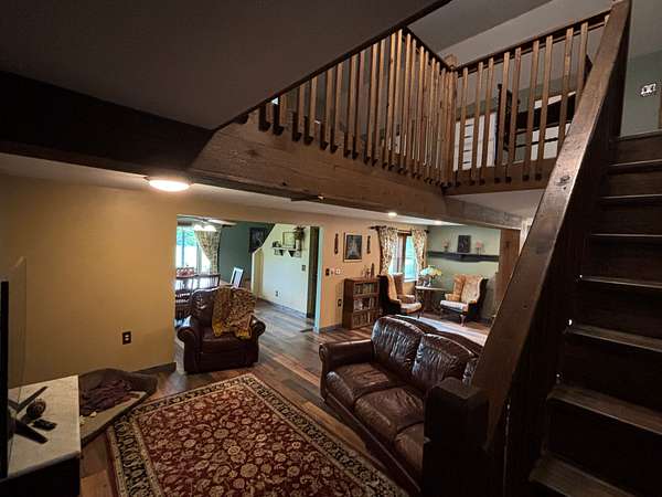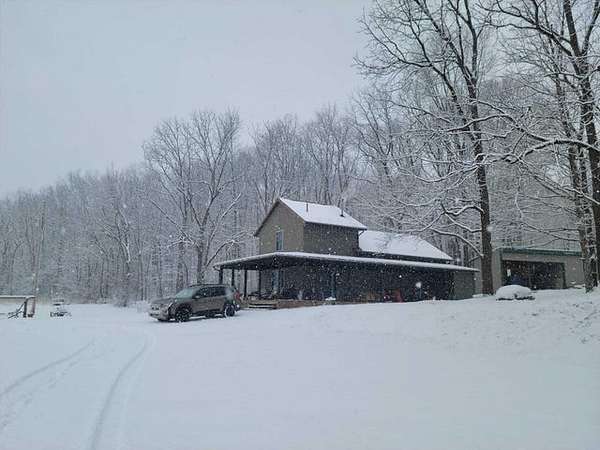 Welcome to your dream homestead and hunting paradise! This charming 2-bedroom home on 11 acres is perfect for anyone looking to embrace nature with its rolling hills and creeks. The open-concept main floor features hardwood floors and plenty of natural light creating a bright and airy atmosphere. Step outside to enjoy the expansive wrap around front porch, perfect for entertaining or relaxing while overlooking the beautiful property. The deer and turkey wander through the pastures and woods, while the hawks and occasional eagle fly overhead. The property includes a 2-stall barn, chicken coop, and fenced in garden. Located 45 minutes away from the Northside of Columbus, this property offers both tranquility and convenience.