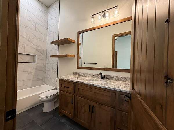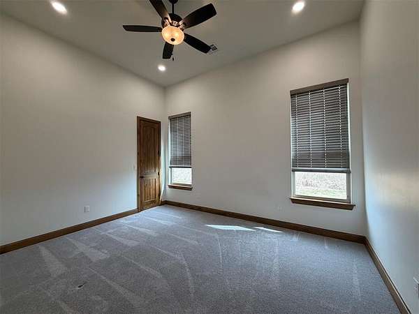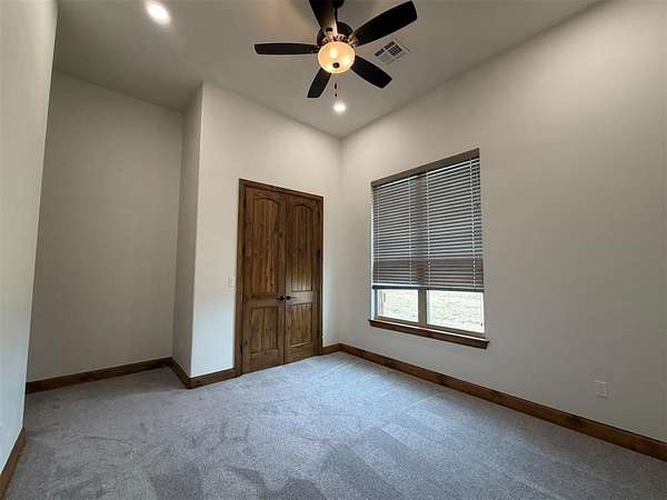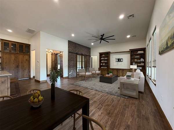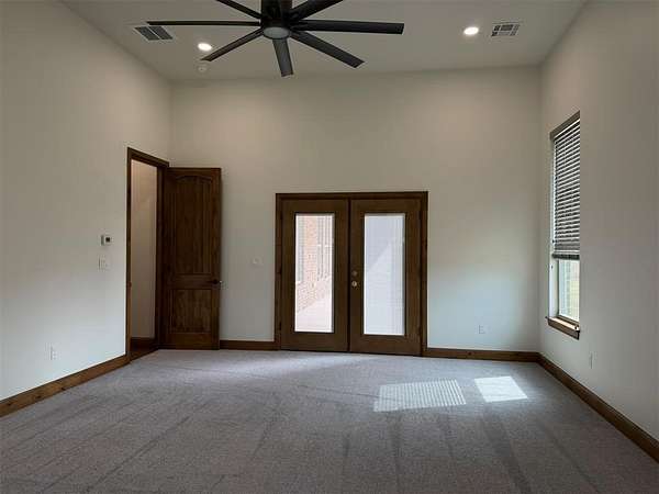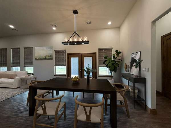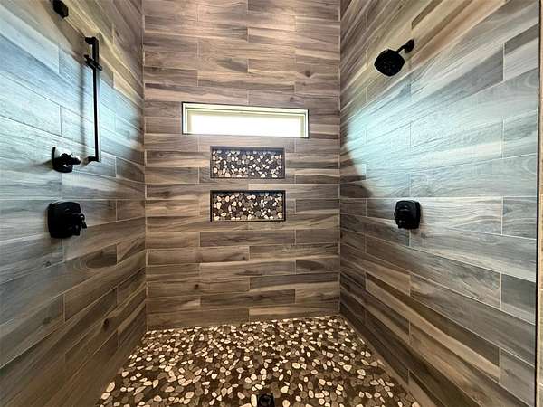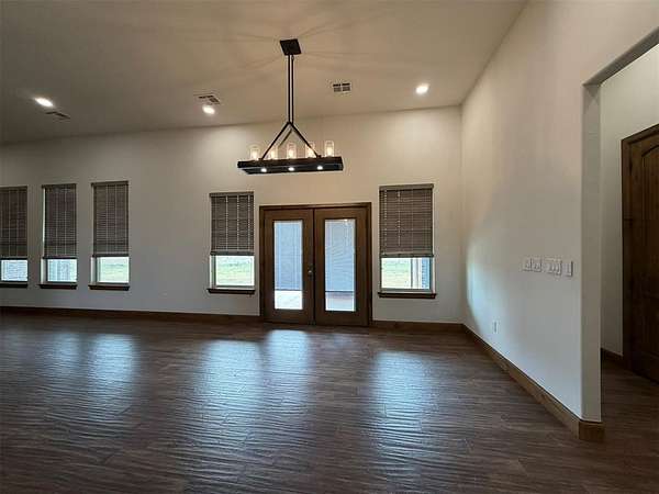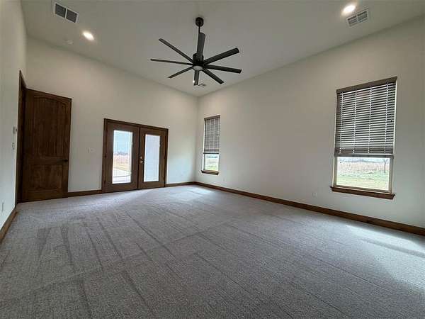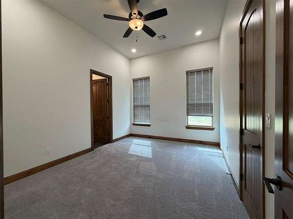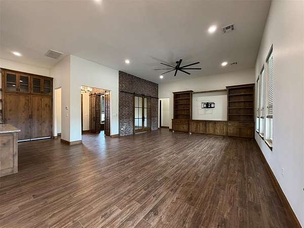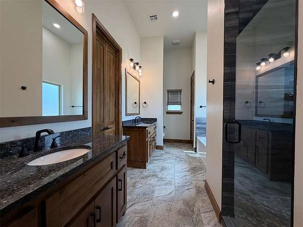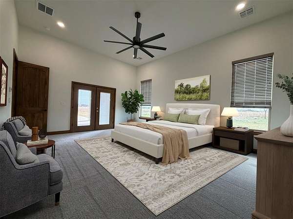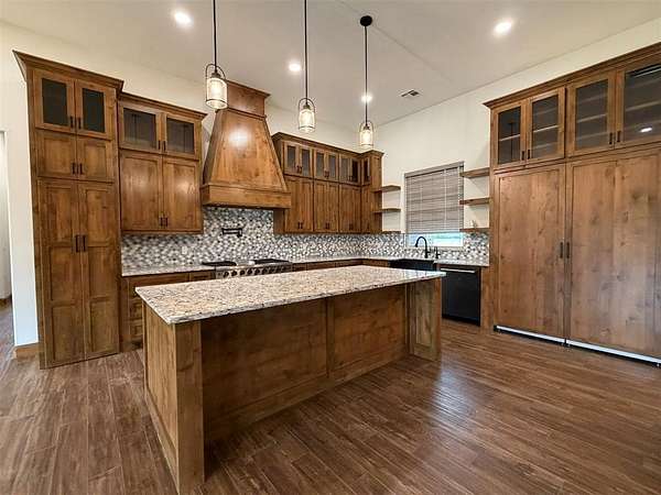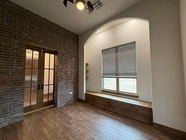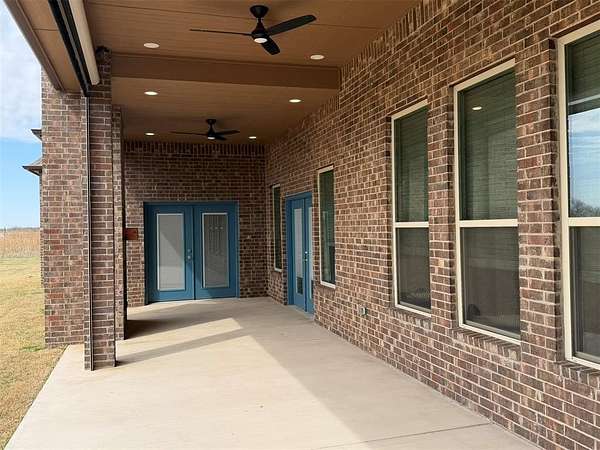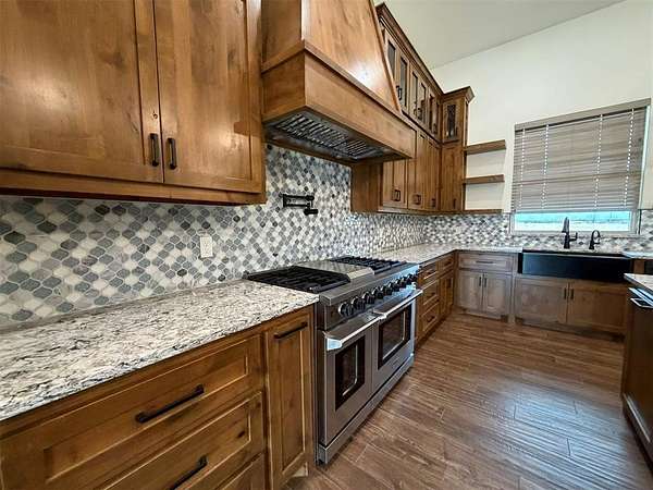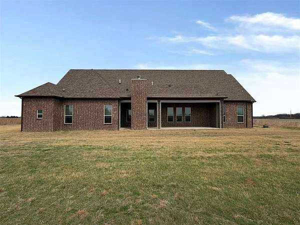 Nestled on this acreage this brick and Stone home has an open floor plan stepping into luxury with soaring 12 foot ceilings and 8 foot interior doors. Dedicated study adds character and charm with brick interior wall, two sets of sliders featuring privacy glass and a built in bench under the window. The living area has built in shelving and drawers, creating a full entertainment wall. The kitchen is open to the living and dining area and includes a hidden pantry that helps keep the kitchen organized. Attractive granite countertops, top of the line stove definitely a kitchen to enjoy. The primary suite offers private access to the back patio the en suite bathroom features double vanities oversized garden tub and an expansive shower for spa like experience. Extra large walk-in closet includes built-in's and direct access to laundry room area. When entering from the garage, there's a comfortable spot for removing shoes hanging coats and organizing items. Bedroom two has a secret bookcase door leading in. Bedroom three has its own private en suite bathroom and walk-in closet. Bedroom four includes a walk-in closet. On the back patio, you can enjoy the outdoor fireplace. in the garage, you will find a dog washing station, water softener, tankless water heater plus a Versalift to lift your storage items into the attic space