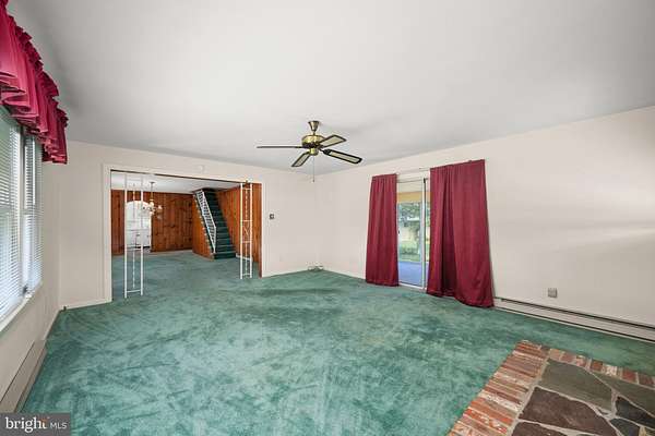 - Carpet, Ceiling Fan(s), Combination Dining/Living, Dining Area, Entry Level Bedroom, Family Room Off Kitchen, Traditional Floor Plan, Tub Shower Bathroom, Wood Floors