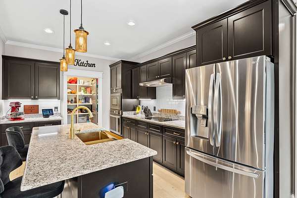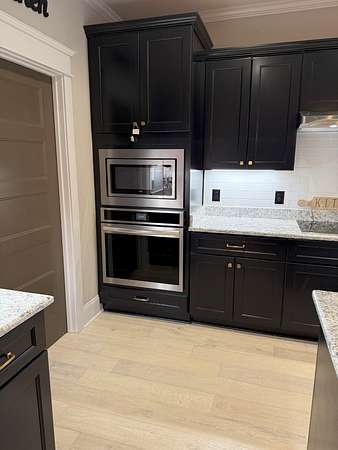 - Built-In Electric Oven, Cooktop, Dishwasher, Microwave, Refrigerator, Stainless Steel Appliance(s)