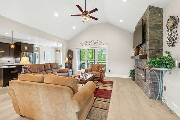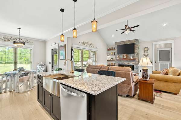 Nearly new, custom-built house on 3.46 level acres with a 30' x 50' shop in sought-after Culleoka. From the rocking chair front porch, the front entry leads to an open floor plan with a family room with a vaulted ceiling, an upscale kitchen featuring tile backsplash, a brass farmhouse sink in a large island, granite countertops, ample cabinets, and a large walk-in pantry with custom wooden shelving, a formal dining area, as well as an eating area. From the eating area, you can step out onto the covered back porch and open deck to enjoy the views of your land with an incredible treescape. A primary bedroom suite with a double trey ceiling and fan, a primary bath with a tile floor, two vanities with granite counter tops, a tiled walk-in shower, a soak tub, and a 13'x9' walk-in closet with a custom-built wood organizer system. Steps away from the primary suite is a laundry room with a tile floor and both upper and lower cabinets. On the opposite side of the house, there are two additional bedrooms and a full bathroom. Upstairs bonus room. Other notable features: upscale lighting throughout, deluxe trim (even in the garage), storage shed, and fully encapsulated crawl space. A deluxe house deserves a deluxe shop, right?! This 1,500 SF fully permitted and inspected shop features: fully spray foam insulated, heated & cooled, withstands wind up to 150 mph, water, 100 amp electric, cement floor, garage door opener, and a 10,000 lb hydraulic lift. No HOA or deed restrictions. Multigenerational potential, would make a great homestead, rich soil perfect for gardening, great for horses, chickens, and other livestock. This property will not disappoint.