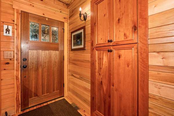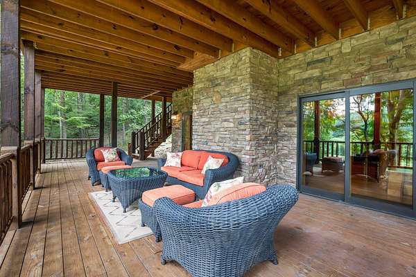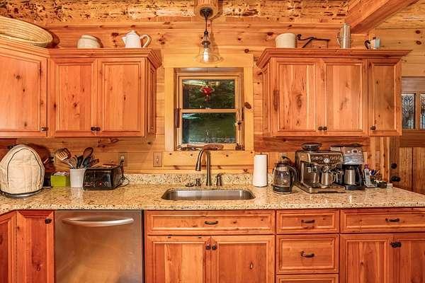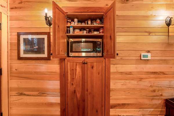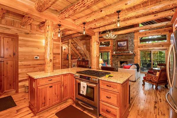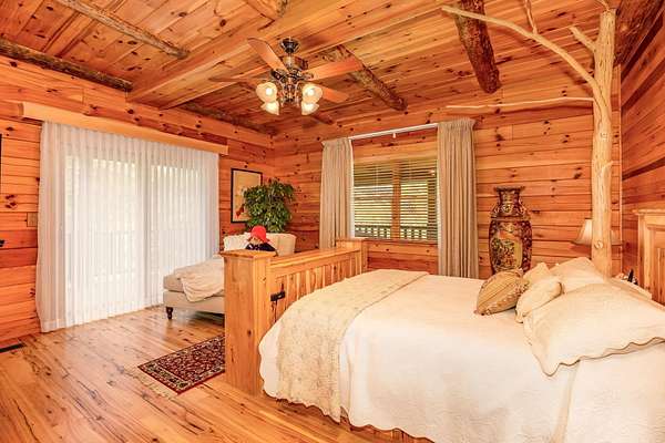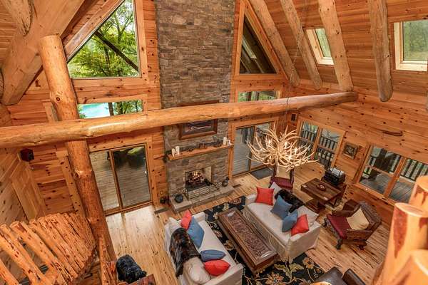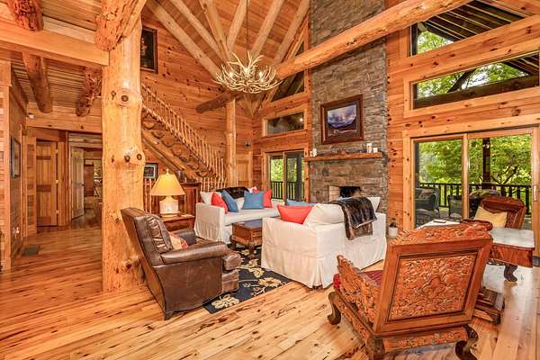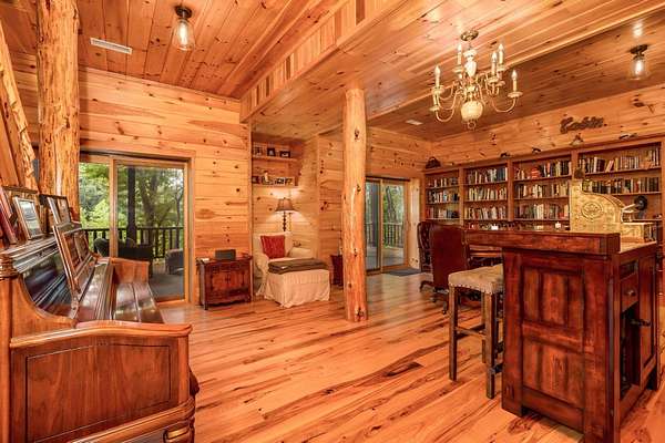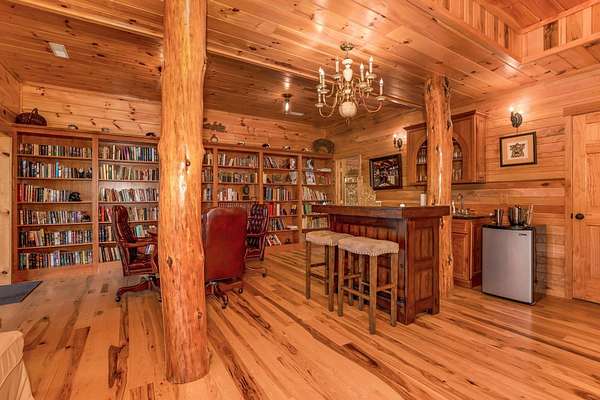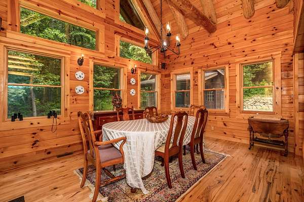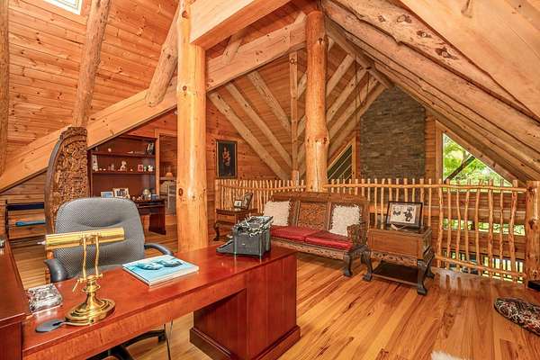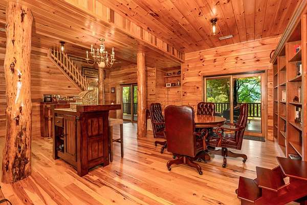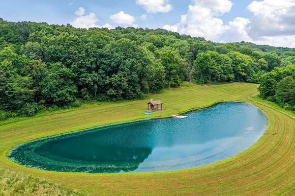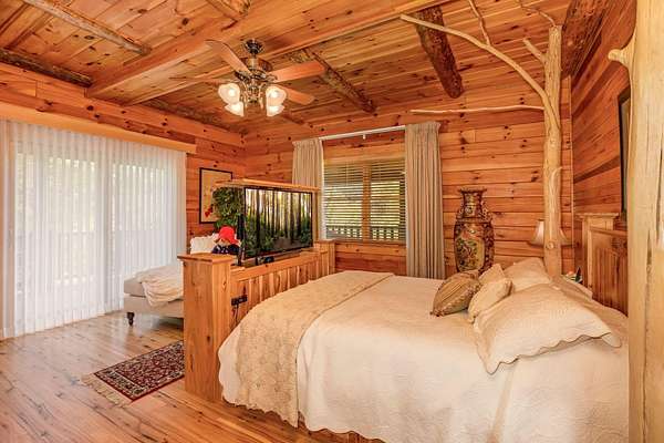 Discover the comfort of luxury living in this stunning custom Jubach Log Home, nestled on over 22 pristine acres. Spanning more than 4,000 square feet, this exquisite residence features 5 bedrooms and 2.5 tastefully appointed bathrooms, offering ample space for all to enjoy. Interior Features: Step inside to be greeted by the warmth of hardwood floors throughout. The heart of the house boasts a gourmet kitchen, equipped with a large gas stove and lovely granite countertops. The expansive living area is anchored by a magnificent double flue fireplace-one inside featuring gas logs for convenience and one on the outside deck for wood burning. For entertainment, experience your own private theater room, unwind in the cozy library on the lower level, and stay active in the dedicated workout room. The loft area serves as a perfect retreat for relaxation or recreation. A sophisticated wine cellar ensures your collection is stored perfectly, while surround sound speakers throughout enhance your living experience. Exterior Features: Venture outside to find wrap-around decks that invite you to bask in the natural beauty surrounding you. An inviting outdoor deck features a full ceramic wood-fired pizza oven, ideal for cozy nights spent enjoying homemade pizzas. Relish peaceful afternoons by your spring-fed lake, complete with a charming gazebo featuring a built-in fireplace. Protective covenants ensure privacy and tranquility, restricting rentals and preserving the serene atmosphere of this remarkable property. Also featuring a detached two-car garage with the potential for a finished second story. Being sold mostly furnished, this amazing property is not just a house; it's a lifestyle waiting for you to make it your own. Embrace the tranquility and elegance of country living while enjoying the comforts of a modern luxury log home. Your dream retreat awaits!