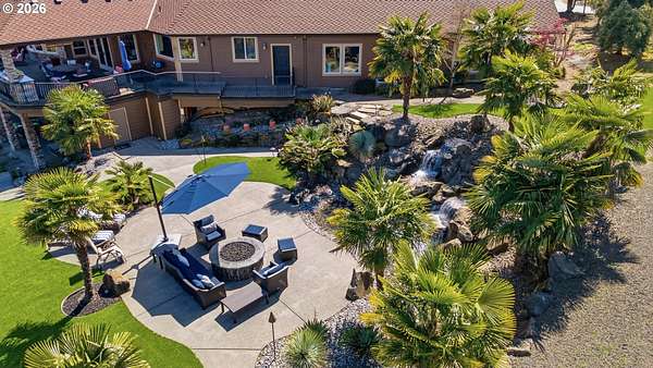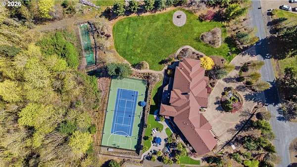 - Covered Patio, Outdoor Fireplace, Sprinkler, Tennis Court, Water Feature, Yard