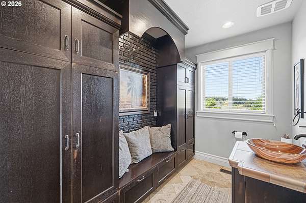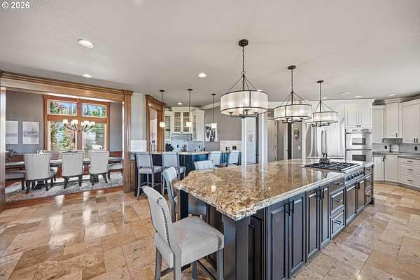 - Builtin Range, Builtin Refrigerator, Dishwasher, Disposal, Double Oven, Gas Appliances, Granite, Island, Microwave, Pantry, Pot Filler, Tile, Wine Cooler