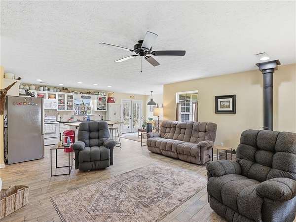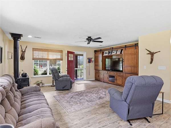 Welcome Home! Come ready to enjoy all that nature has to offer with this adorable 2 bedroom/2 bath home on 26 acres with 2 beautiful creeks. Only minutes to town. Grab a drink and enjoy grilling on the awesome back patio. Great open concept floorplan. Wood burning stove in the living room gives a cozy feel. This home features high end finishes including alligator granite counter tops in the kitchen with tile a backsplash, butcher block island, oversized closets, tile showers and granite vanities. The spray foam insulation makes this home super efficient and comfortable. All appliances will remain including the washer and dryer. There are 2 24X36 storage buildings and 2 12X24 storage buildings. There is an abundance of wildlife and fruit trees.