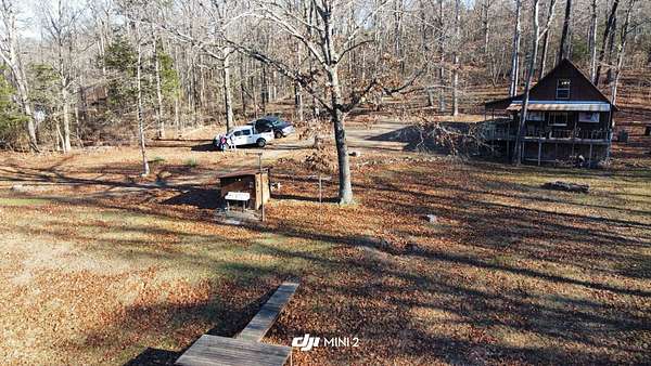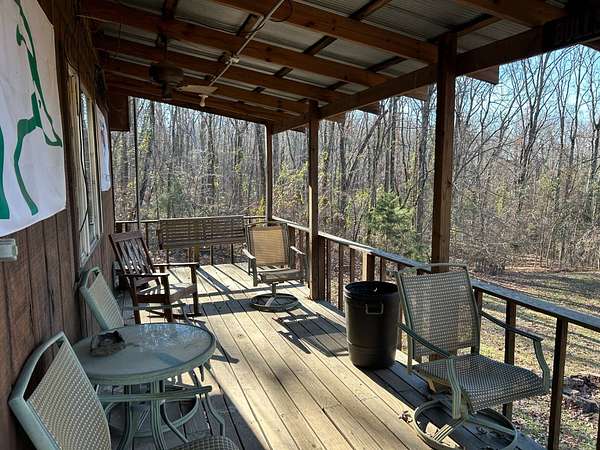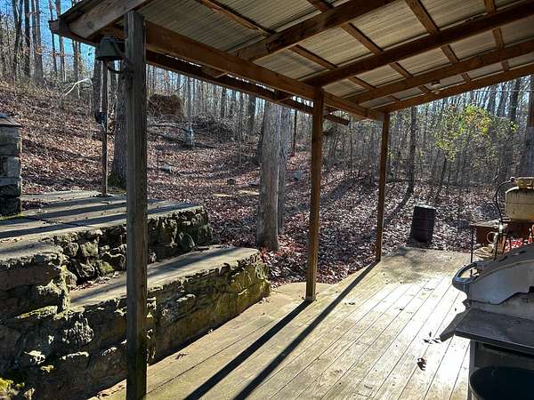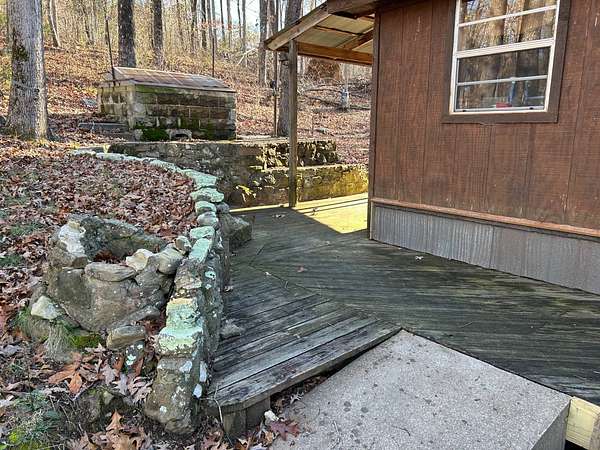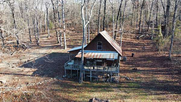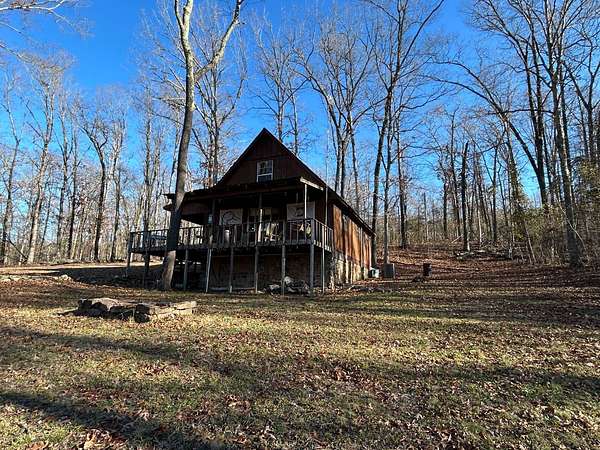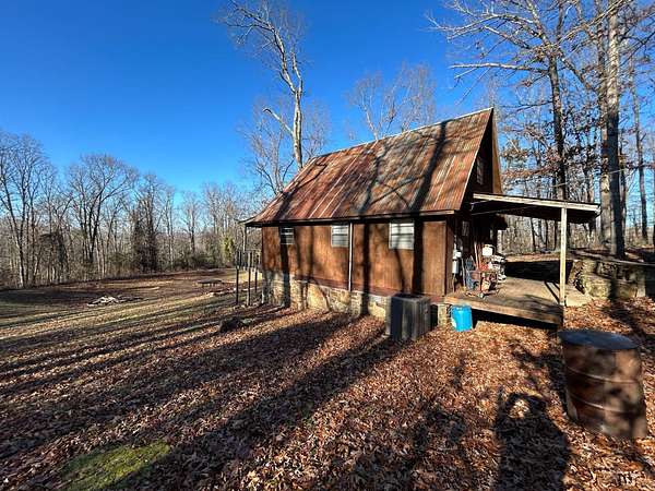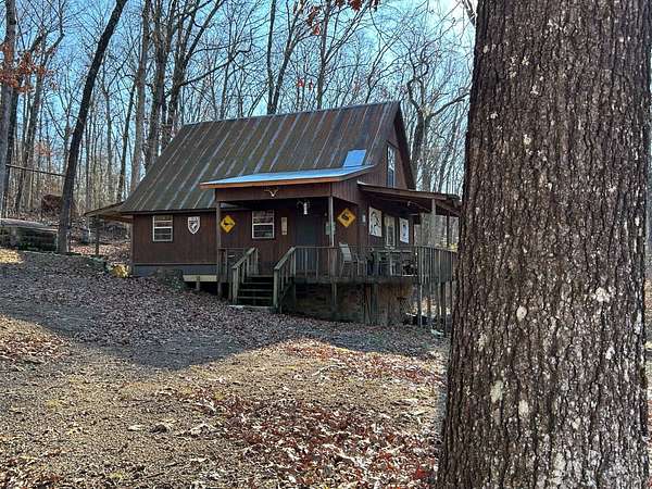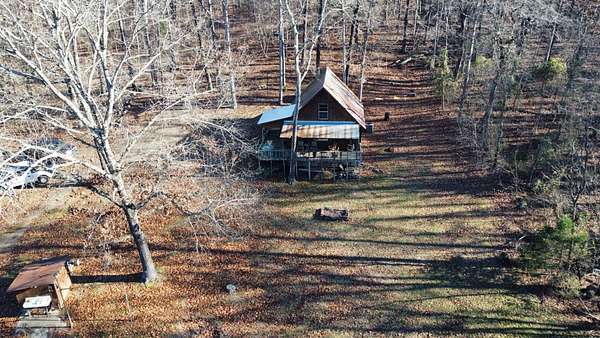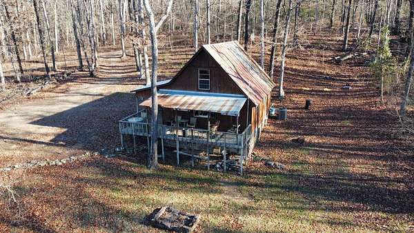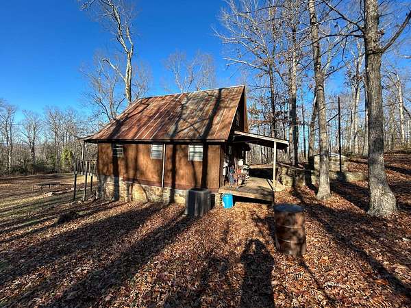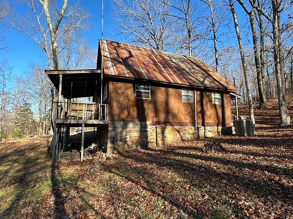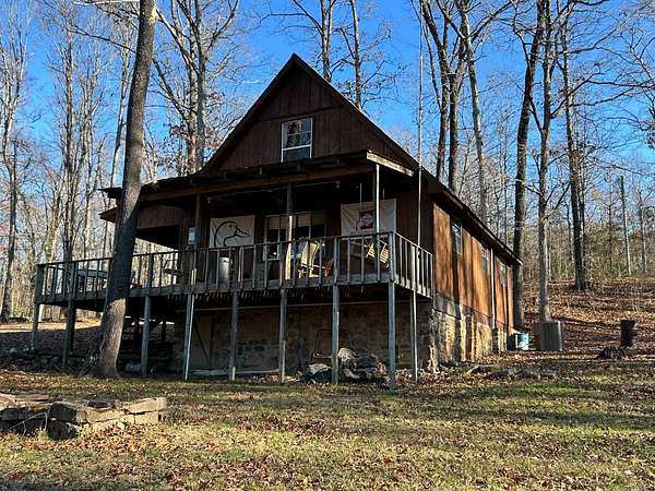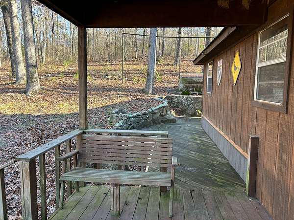 Escape to this peaceful 2-bedroom, 1-bath furnished cabin on approximately 3 acres just north of Ozark, Arkansas-perfect for hunters, weekend getaways, or anyone looking for quiet seclusion at the end of a dead-end road. The cabin comes furnished, including beds and bedding, pots, pans, kitchen utensils, tables and chairs, sofas, patio furniture, two refrigerator-freezers, and additional decor, though not all items pictured will convey. It even has a kitchen table made out of the Old Ozark High School Basketball gymnasium at 12th & Gibson. Enjoy relaxing mornings or evenings on the covered porches that run along both the front and back of the cabin, offering ideal spots to watch wildlife. The property includes two wells-a 65' well and a 100' well-with the 100' well supplying the cabin. The well system is pumped through a sand filter before reaching the cabin; however, the well currently requires a new in-ground pump. The interior offers two bedrooms and a full bathroom with a shower-tub combination. Outdoor features include a built-in smoker set in a beautiful rock backdrop, excellent hunting opportunities, and a skinning pole with a sink located beside the well house. This property provides the perfect blend of comfort and rustic charm, ready for its next owner to enjoy.