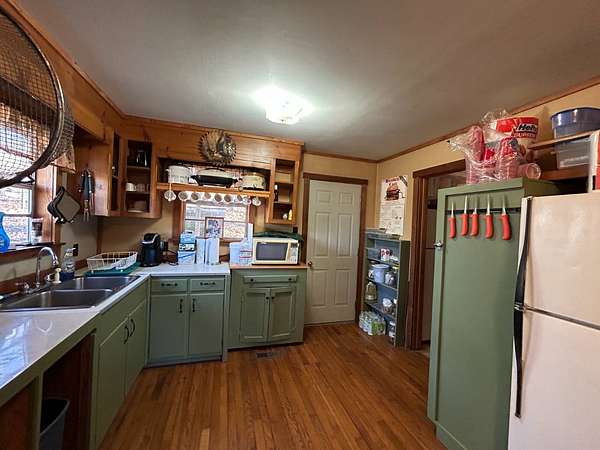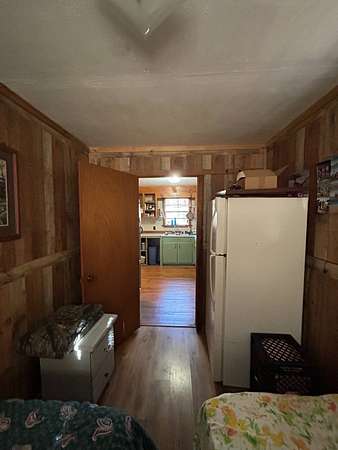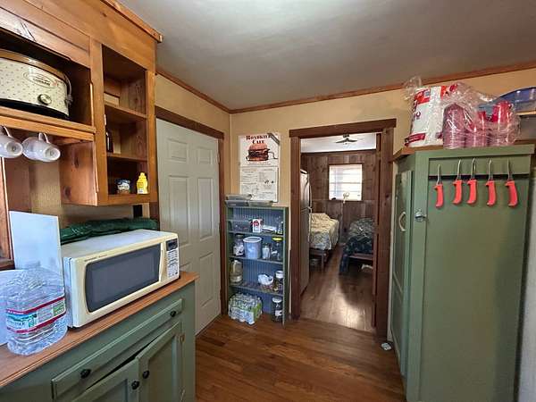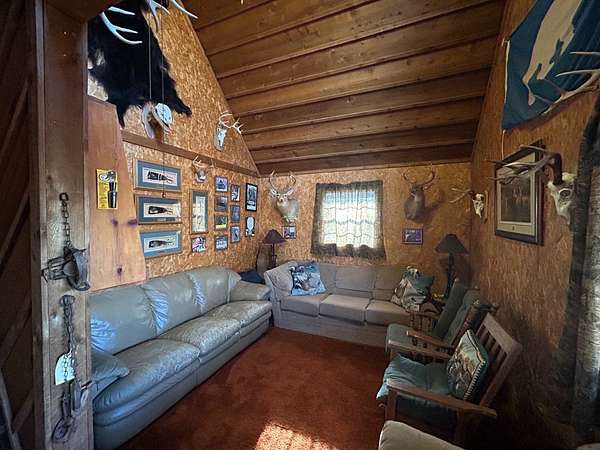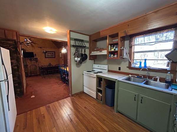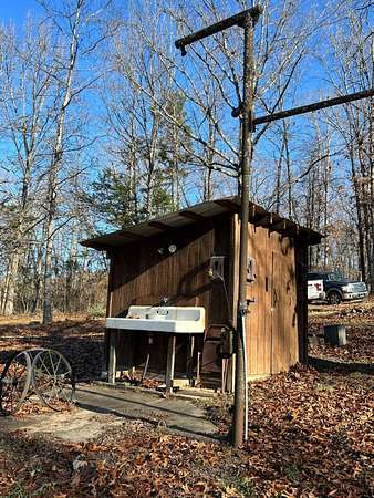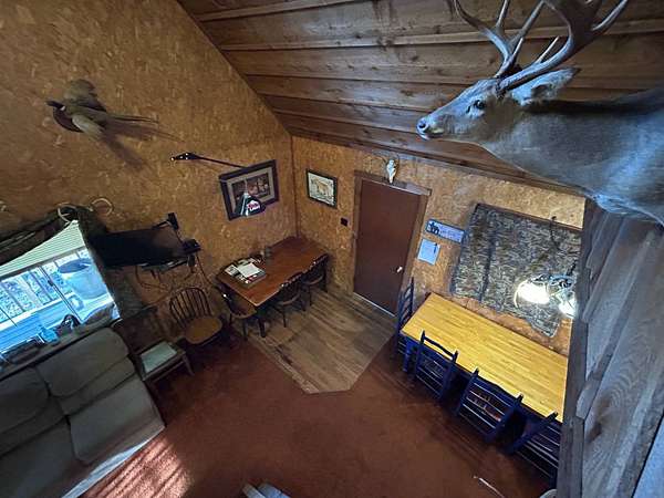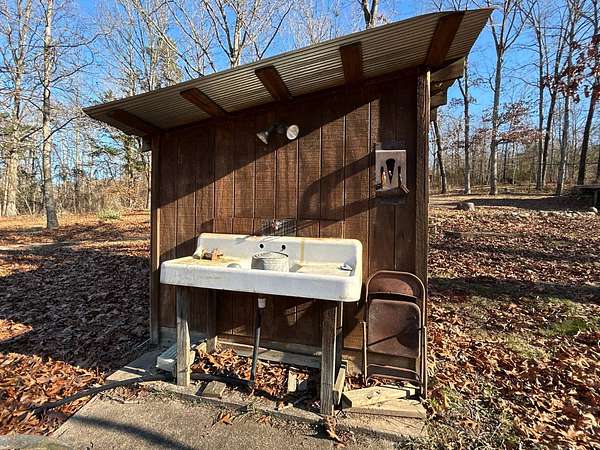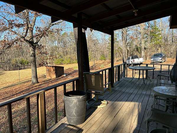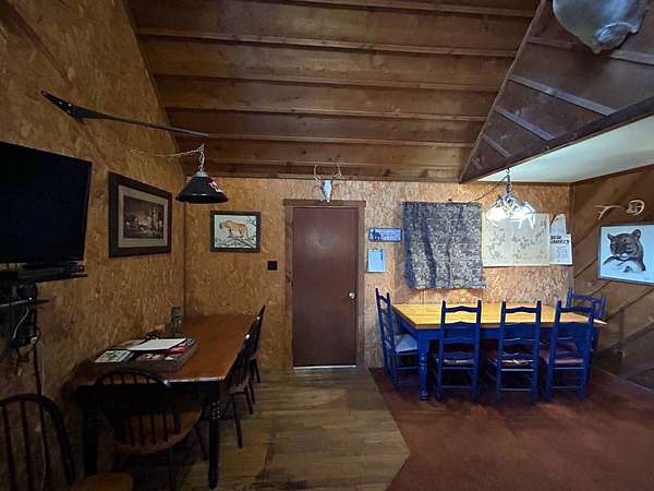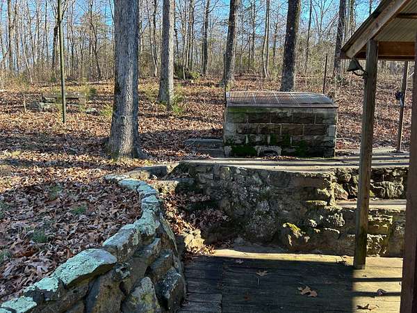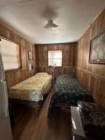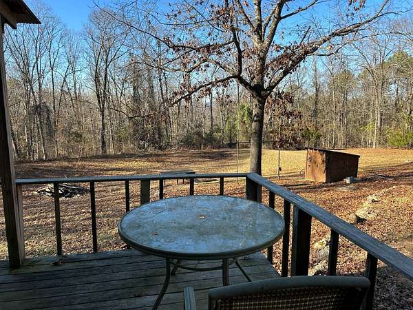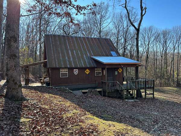 Escape to this peaceful 2-bedroom, 1-bath furnished cabin on approximately 3 acres just north of Ozark, Arkansas-perfect for hunters, weekend getaways, or anyone looking for quiet seclusion at the end of a dead-end road. The cabin comes furnished, including beds and bedding, pots, pans, kitchen utensils, tables and chairs, sofas, patio furniture, two refrigerator-freezers, and additional decor, though not all items pictured will convey. It even has a kitchen table made out of the Old Ozark High School Basketball gymnasium at 12th & Gibson. Enjoy relaxing mornings or evenings on the covered porches that run along both the front and back of the cabin, offering ideal spots to watch wildlife. The property includes two wells-a 65' well and a 100' well-with the 100' well supplying the cabin. The well system is pumped through a sand filter before reaching the cabin; however, the well currently requires a new in-ground pump. The interior offers two bedrooms and a full bathroom with a shower-tub combination. Outdoor features include a built-in smoker set in a beautiful rock backdrop, excellent hunting opportunities, and a skinning pole with a sink located beside the well house. This property provides the perfect blend of comfort and rustic charm, ready for its next owner to enjoy.