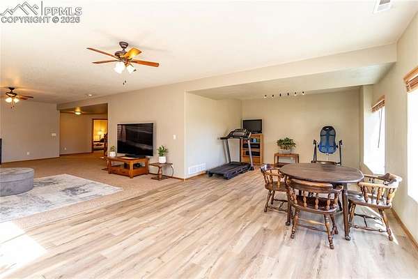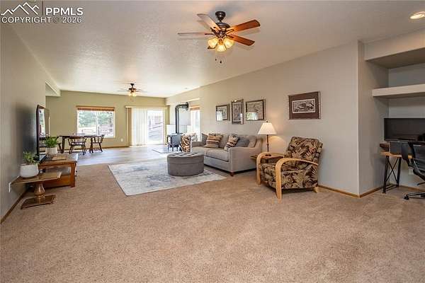 Tucked among the trees on a peaceful 5-acre parcel in the sought-after Rivers Divide community, this exceptional property offers the perfect blend of privacy, space, and Colorado beauty. Welcome home to where serene living meets thoughtful design. This custom ranch-style home is designed for effortless main-level living, featuring an open concept plan with great room showcasing soaring vaulted ceilings, a striking custom ledgestone fireplace, and expansive sliding glass doors that seamlessly connect indoor and outdoor living. Step out onto the newly built steel composite deck-complete with a greenhouse-where you can relax, entertain, or simply take in the tranquil, treed surroundings. The main level features a spacious primary suite and convenient laundry, creating ease and comfort in everyday living. Along with two other bedrooms and full bath; this split bedroom floor plan offers privacy and true main level living. Downstairs, the walk-out basement expands your living space with a massive family room, a wood burning stove, a generously sized bedroom with oversized closets, and a full bath-ideal for guests, multi-generational living, or a private retreat. Outdoor living is where this property truly shines. Multiple decks and patio spaces invite you to enjoy Colorado's sunshine, quiet mornings, and starlit evenings. For those seeking a lifestyle with room to roam, the property includes a 1,200 square foot, 3-stall horse barn equipped with skylights, power, large fan, outdoor motion sensors, interior and exterior hose bibs, and a dedicated tack room. The fenced pasture completes this turnkey setup for horse enthusiasts or anyone desiring wide-open space. If you've been searching for a property that offers privacy, functionality, and a true connection to nature-this is it!