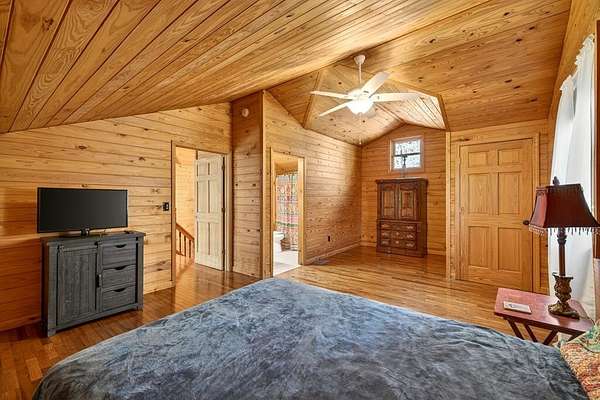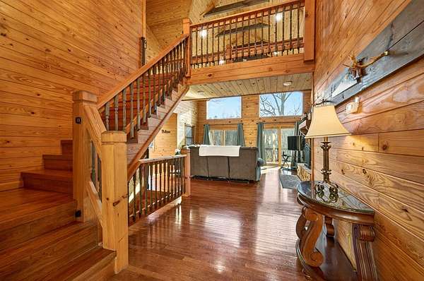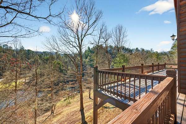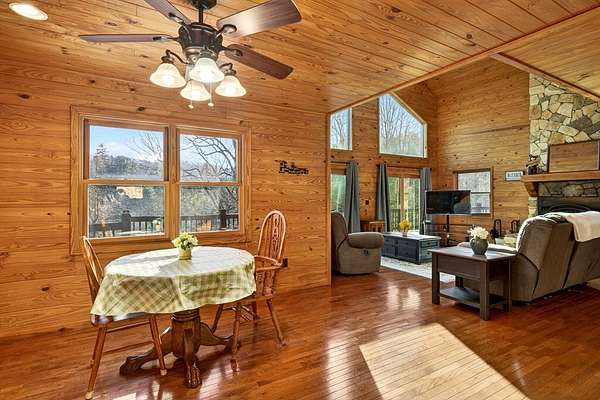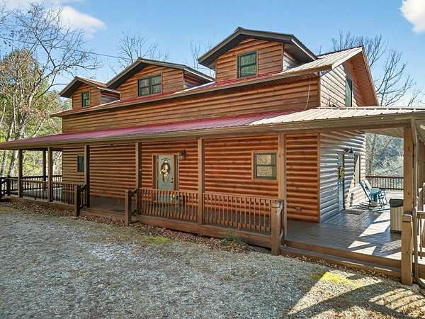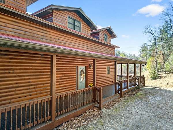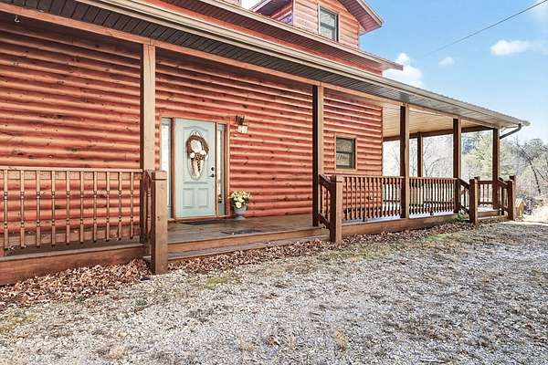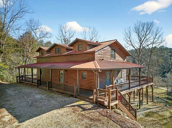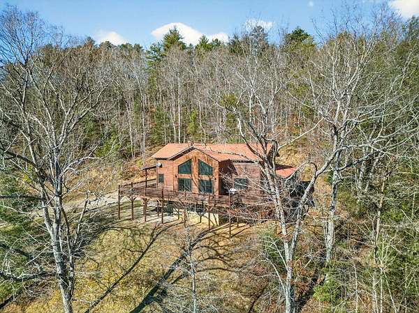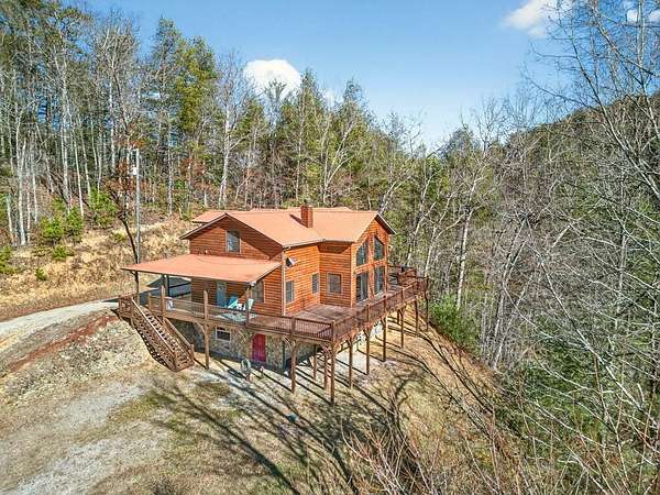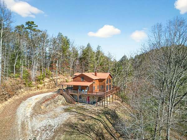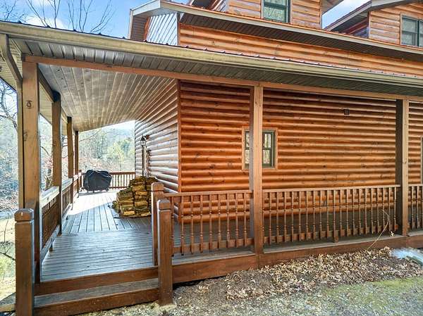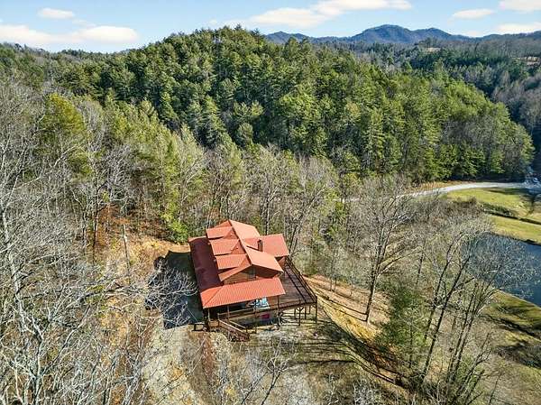 MOUNTAIN PARADISE WITH ENDLESS POSSIBILITIES | 4 BR, 4.5 BA on 6.30 ACRES+/-! Nestled close to US Forest Service land, this magnificent custom craftsman retreat offers the ultimate mountain lifestyle! Just 11 miles+/- to Fontana Dam and 14+/- miles to the town of Robbinsville. The main level showcases a stunning great room with wood-burning fireplace, opening to an expansive deck with breathtaking property views. Primary bedroom suite, and additional half bath complete this floor. Gourmet kitchen features eat-in bar plus space for dining, and lots of cabinet space! Upstairs presents two bedroom suites, each with private full bathrooms. The fully finished basement includes a gas fireplace, wet bar, and flexible space perfect for entertainment/game room. Property highlights include a serene pond, meandering creek, detached 2-car garage, and outbuildings. This multi-level design , with a full basement, ensures privacy throughout. Endless possibilities - could be used as a compound for loved ones, investment property, or a vacation rental. Being sold fully furnished, with all appliances. Experience natural beauty in this turnkey mountain oasis! Your private sanctuary awaits. Quality craftsmanship is a hallmark of this log siding home, featuring vaulted ceilings, beautiful, stone, a wood burning fireplace and gorgeous hardwood floors. With approx 6.5 acres+/-, multi-levels, 4 bedrooms and 4 1/2 baths, it is spacious enough for your friends and guests to spread out and enjoy. Experience nature by taking in the expansive views from your wrap around porch, all in your own backyard which is mostly surrounded by USFS! Get ready to relax and unwind... in your dream home!!