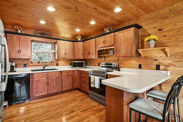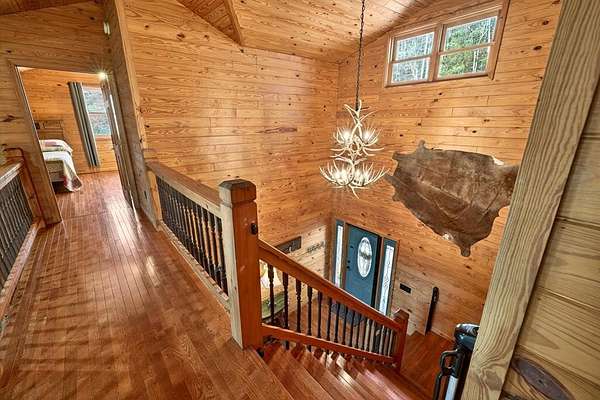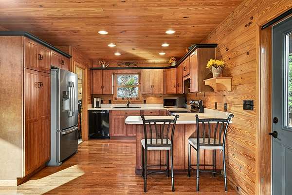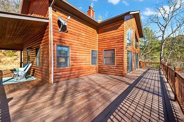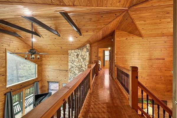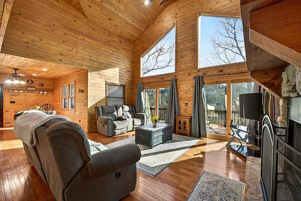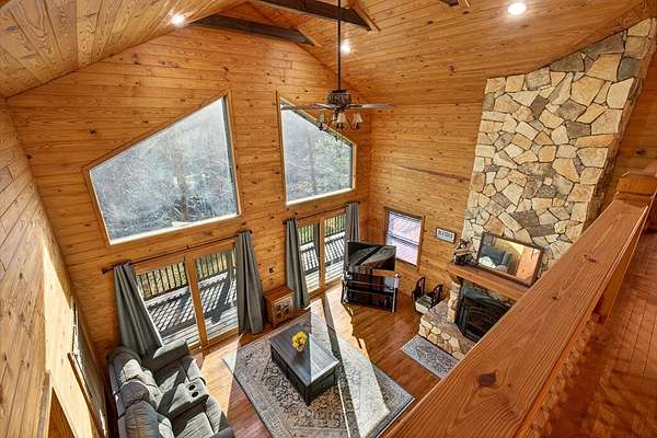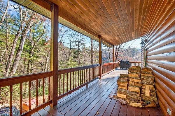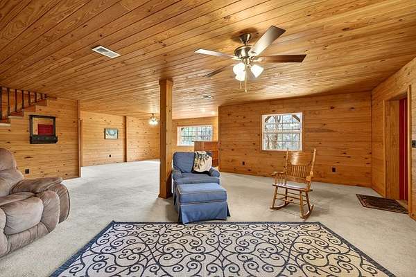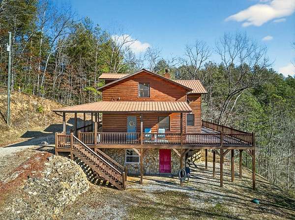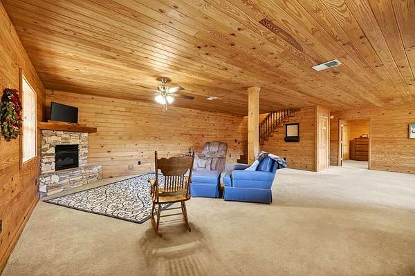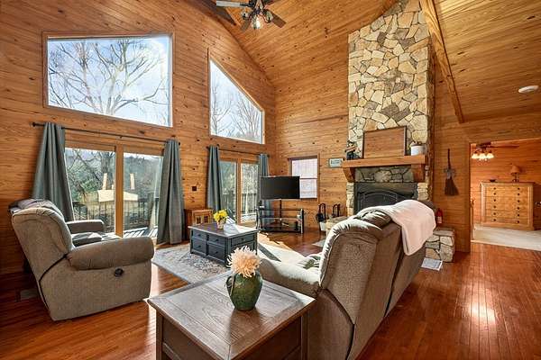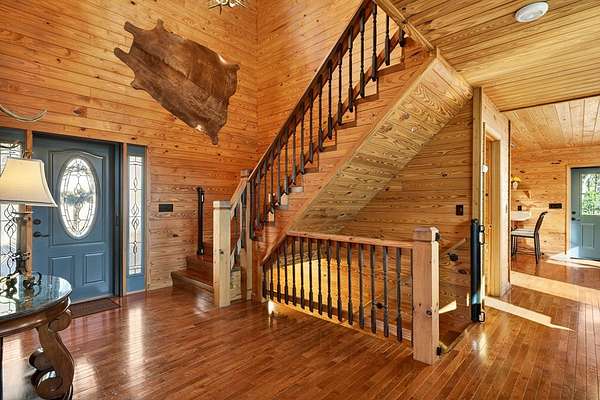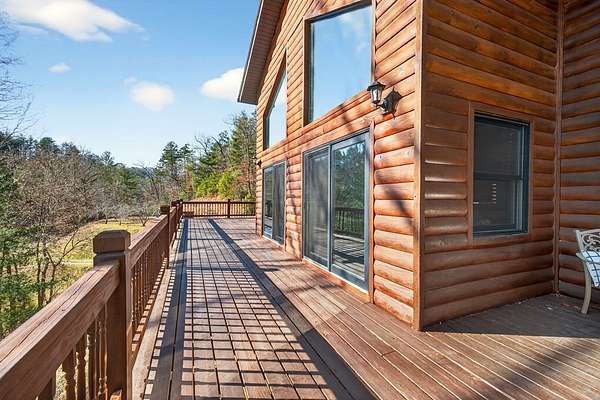 MOUNTAIN PARADISE WITH ENDLESS POSSIBILITIES | 4 BR, 4.5 BA on 6.30 ACRES+/-! Nestled close to US Forest Service land, this magnificent custom craftsman retreat offers the ultimate mountain lifestyle! Just 11 miles+/- to Fontana Dam and 14+/- miles to the town of Robbinsville. The main level showcases a stunning great room with wood-burning fireplace, opening to an expansive deck with breathtaking property views. Primary bedroom suite, and additional half bath complete this floor. Gourmet kitchen features eat-in bar plus space for dining, and lots of cabinet space! Upstairs presents two bedroom suites, each with private full bathrooms. The fully finished basement includes a gas fireplace, wet bar, and flexible space perfect for entertainment/game room. Property highlights include a serene pond, meandering creek, detached 2-car garage, and outbuildings. This multi-level design , with a full basement, ensures privacy throughout. Endless possibilities - could be used as a compound for loved ones, investment property, or a vacation rental. Being sold fully furnished, with all appliances. Experience natural beauty in this turnkey mountain oasis! Your private sanctuary awaits. Quality craftsmanship is a hallmark of this log siding home, featuring vaulted ceilings, beautiful, stone, a wood burning fireplace and gorgeous hardwood floors. With approx 6.5 acres+/-, multi-levels, 4 bedrooms and 4 1/2 baths, it is spacious enough for your friends and guests to spread out and enjoy. Experience nature by taking in the expansive views from your wrap around porch, all in your own backyard which is mostly surrounded by USFS! Get ready to relax and unwind... in your dream home!!