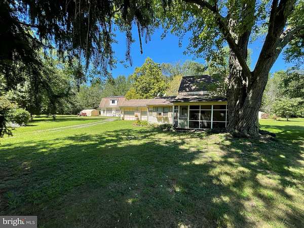 Tucked away a half mile from the main road, this 14-acre Southampton property offers rare seclusion and versatility. The single-family home is a true farmhouse cottage, featuring hardwood floors under the carpet, a screened porch, dining and living rooms, kitchen, office/mudroom, full bath, and two bedrooms. Updates include a two-year-old roof, plus a water heater and furnace replaced nine years ago. An attached two-car garage and a backyard patio with seasonal views complete the home. The detached 2,400 sq. ft. workshop is a standout, offering two oversized bays below and a full apartment upstairs with kitchen and bath. Separate solar panel systems power both the home and workshop, adding efficiency and independence. Total Solar payment for both panels are $240 per month. With the right owner, this can be a money-producing property set against a beautiful backdrop-tucked away from the hustle and bustle yet close to all the shopping, restaurants, and conveniences you want to enjoy. Just 20 minutes to Main Street in Medford, 45 minutes to Long Beach Island, and 45 minutes to Center City Philadelphia. Perfect for a landscaping business, auto work, animal rescue, farming, gardening, vehicle storage, or as a private retreat. Being sold as-is.