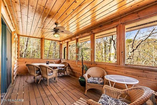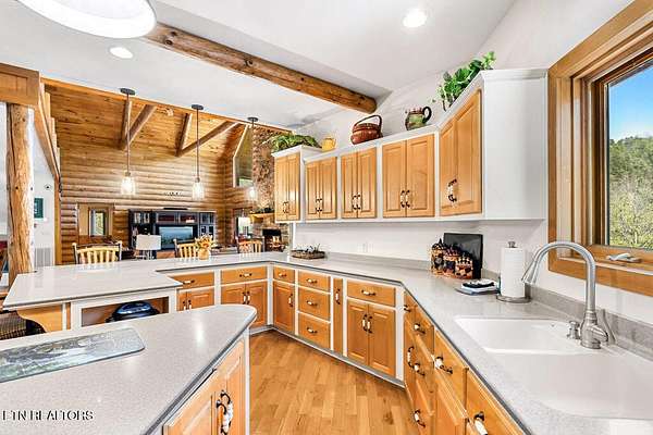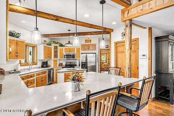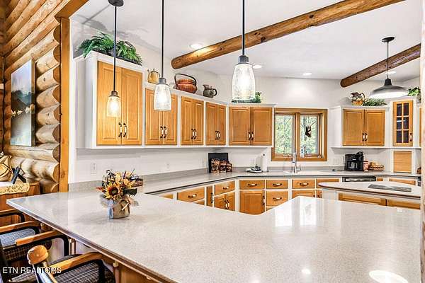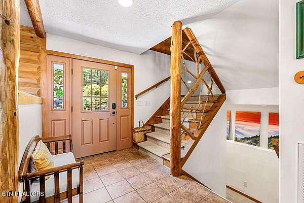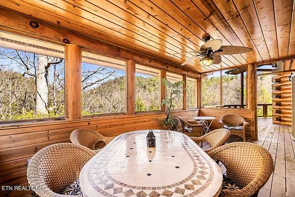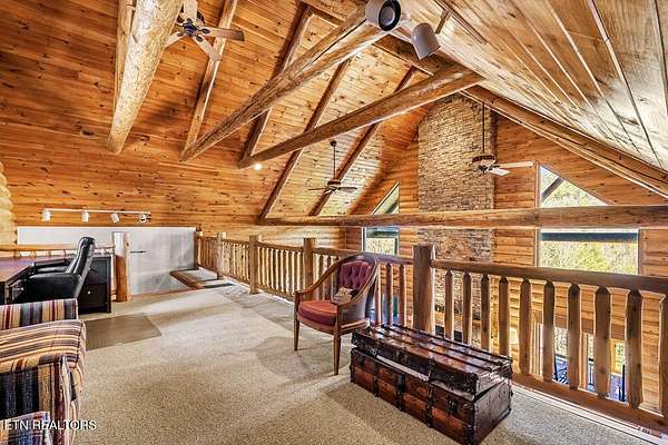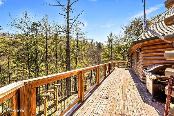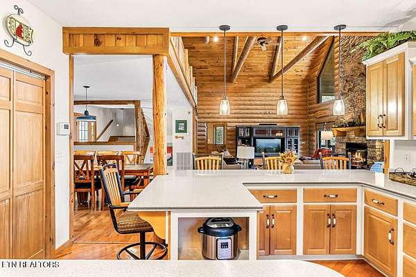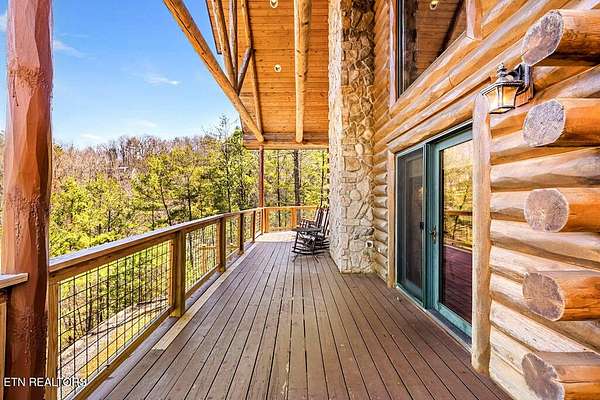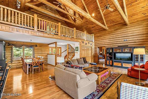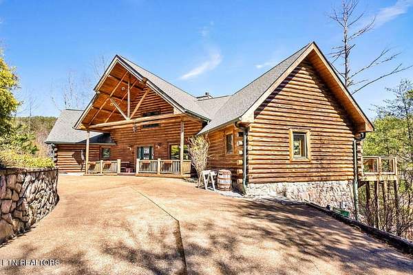 Tucked away in the peaceful side of the Smokies, this 3BR/3BA log cabin in Townsend delivers the perfect mix of rustic charm and modern comfort. Built from premium Western Red Cedar logs, this property is ideal as a primary home, second home, or short-term rental. Inside, you'll find soaring cathedral ceilings, exposed beams, and a stunning stone fireplace anchoring the open-concept living space. The kitchen features custom wood cabinetry, stainless appliances, and a large breakfast bar for easy entertaining. A versatile loft overlooks the main living area--perfect for a home office or additional lounge space. The primary suite offers a private retreat with an ensuite bath and direct access to a screened-in deck for year-round enjoyment. Two additional bedrooms each have convenient access to full baths, making the layout ideal for guests or renters. A standout feature is the fully insulated, soundproofed workshop--complete with ventilation and all tools included--perfect for woodworking or hobbies. Outside, enjoy the expansive wraparound deck surrounded by peaceful woods, ideal for morning coffee or winding down after a day in the mountains.