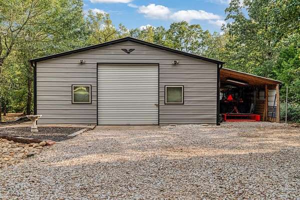 Curb appeal and country living, two great combinations. New gravel driveway brings you to this spacious 4 bedroom, 3 bath home on 4.89 acres. Adding to the beauty of the setting are mature trees, newly landscaped flower beds and open backyard. Enter into the home through the open entry to the formal dining and living area. Living area features multiple windows for natural light and wood burning fireplace. Formal dining is open and easily accommodates larger furniture. Kitchen features work island, quartz countertops and a great walk-in pantry along with a work island and nice breakfast room. Primary bedroom is spacious with ample room for a sitting area joined be the full bath with walk-in shower and closets. Additionally, to this wing are 2 bedrooms and a nice hall bath. A second primary bedroom is located on the far side of the house with an adjoining full bath and access to the garage entry door. Perfect for a a mother-in-law suite or guest suite. If you love the outdoors, you will certainly enjoy the covered and open patio overlooking the backyard. Wildlife is abundant for the nature lover. The 30x40 shop with attached 12' lean to has electricity and insulated panels. New roof installed 2022, aerobic septic system is 7 years old, HVAC 4 yesrs old. This checks off a lot of boxes!
