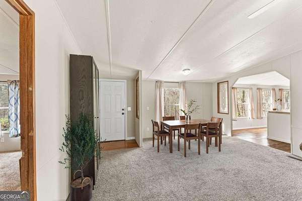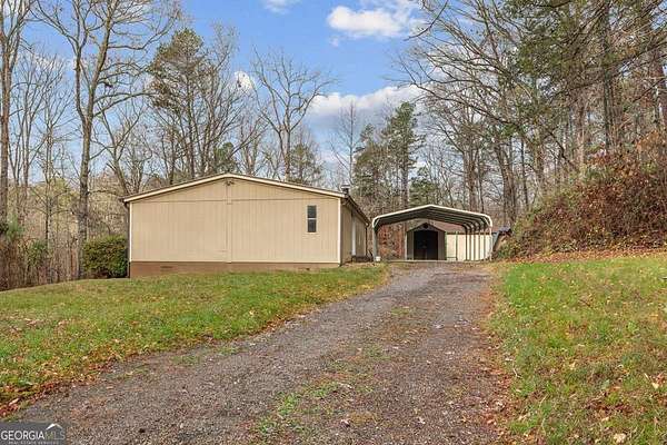 Enjoy peaceful one-level living on more than 3 acres of beautiful land near Lake Allatoona, complete with a creek, abundant wildlife, and exceptional privacy. Inside, the home features a spacious and comfortable open living and dining area with a charming fireplace and large windows that showcase the natural surroundings. The kitchen offers newer appliances, including a refrigerator and dishwasher, plus counter seating and easy flow to both the dining area and the breakfast nook. Three large windows bring in abundant natural light and provide stunning forest views. Next to the breakfast nook is additional storage and pantry space, with convenient access to the full-size laundry and mudroom. From here, step directly onto the expansive back deck, perfectly positioned for outdoor enjoyment. The primary bedroom is generously sized and includes an ensuite bathroom with double vanities and two closets, offering excellent storage and functionality. Two additional bedrooms sit off the hallway near the kitchen, with a full bathroom located between them. Outside, the large wood deck overlooks the peaceful acreage and sets the stage for relaxation or gatherings. With more than 3 acres, there is room for gardening, outdoor games, exploring the wooded areas, target practice, or simply enjoying quiet mornings and evenings surrounded by nature. The property features a beautiful creek, multiple berry bushes, and regular friendly wildlife sightings. A two-car carport provides covered parking with additional space in the driveway. A garden shed sits off the carport, and a new outbuilding built on a concrete slab expands the possibilities, ideal for a gym, storage, hobbies, a workshop, or future customization. The metal roof with gutter guards adds to its low-maintenance appeal. This quiet neighborhood offers significant space between homes and a serene, natural setting while remaining close to modern conveniences, including a nearby fire station and quick access to Lake Allatoona. From GA-20, onto Ficklen Church Way, then a quick right, and you'll be right home. A comfortable home on stunning land, ready for your next chapter.