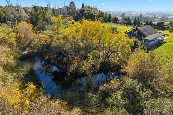 Tucked into the Corralitos hills this 6.6-acre property offers modern country living with space to stretch out. Fully fenced and gated, the land is highly usable and walkable with all day sun exposure, ocean and valley views, and gorgeous sunsets. The 2016 main home features 3 bedrooms, 2 baths, and 1,548 SF of contemporary comfort. A 596 SF deck and covered porch extend the living area outdoors for relaxing or taking in the views. Nearby, the original 2BR/1BA home remains onsite as a valuable bonus structure ideal for workspace, storage, or future re-imagining. The upstairs is a finished loft ideal for extra storage. Improvements include a newer productive well, an upgraded septic system serving both homes and multiple outbuildings including a garden shed with hot water for washing up after outdoor projects. The land offers small delights everywhere: fruit trees, a calm pond, an old vineyard still producing grapes, primarily Syrah and Pinot Noir, and across the road, a beautiful creekside setting with towering redwoods. Plus the property shares a boundary with Mt. Madonna State Park that boasts miles of horseback riding trails. With excellent sun and easy access, this is peaceful, spacious country living in a setting that is meant to be enjoyed.