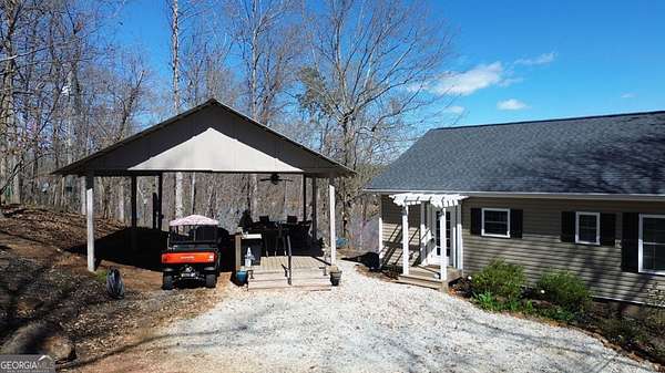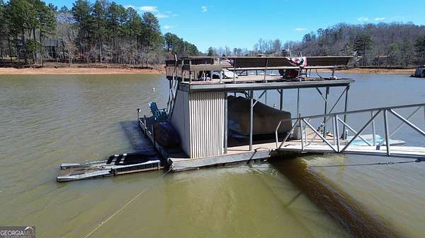 This better-than-new Lake Hartwell home is sited on a private lot and has everything you would need for full-time living or enjoying weekends on the lake. The large parking area has plenty of room for family and friends. An adjacent pavilion large enough for a travel trailer, overlooks the lake and includes an attached covered deck. Inside the home, the great room is open to the granite kitchen and dining area, and that room opens onto another covered porch overlooking the lake. There are three bedrooms and two baths all on one level, and the crawl space with a full size door makes a great place to store all of your lake toys. There is a concrete path down to the covered sip dock with upper deck and two PWC ports. This property also includes a detached storage building.