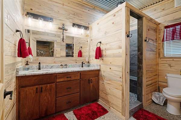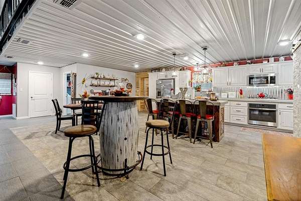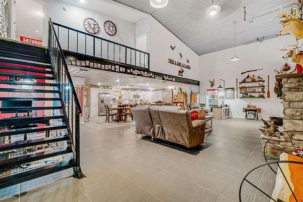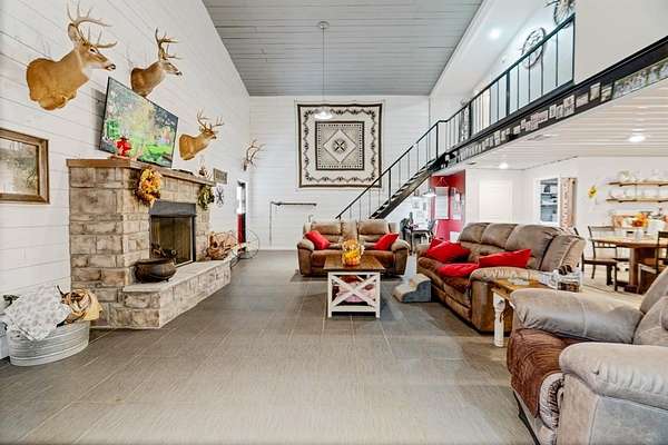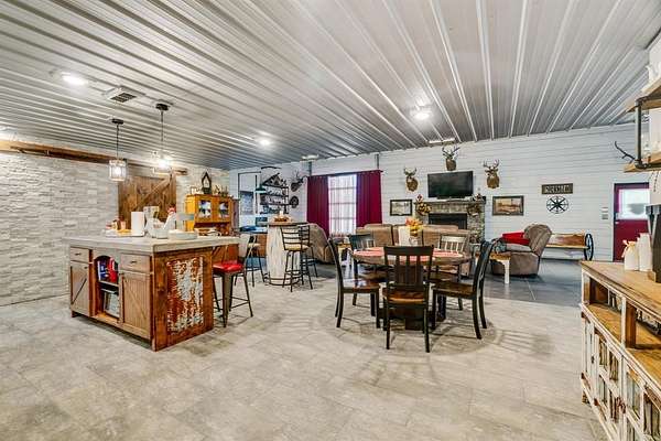 Welcome to this stunning barndominium style home sitting on 2.44 acres with private lake access. Featuring 3 bedrooms and 3 full baths, this property offers a perfect blend of modern comfort and rustic charm. Step inside to an impressive open concept living area with soaring ceilings, a stone fireplace and plenty of natural light. The spacious kitchen boasts new custom cabinetry, a large island, concrete countertops, walk in pantry and stainless appliances. Enjoy the outdoors with a covered patio and peaceful views of the lake just steps away. The property also includes full RV hookups and ample parking. Whether relaxing by the water, entertaining indoors or enjoying the wide open space, this home was build for comfort and lifestyle.