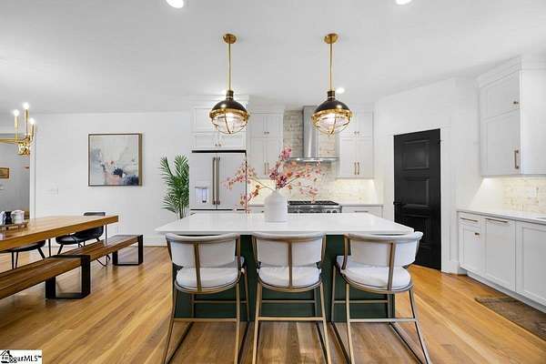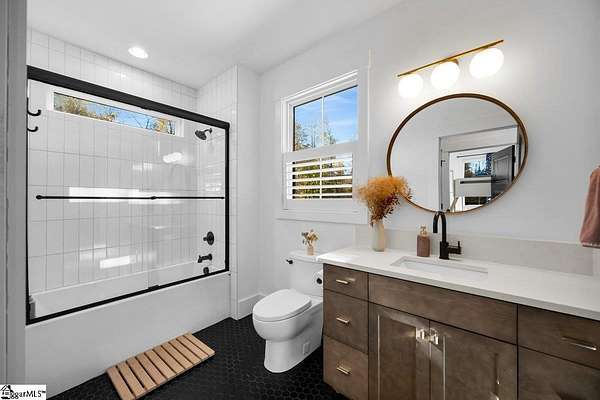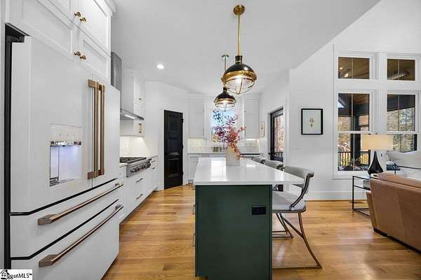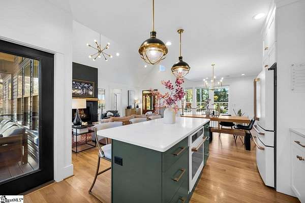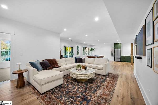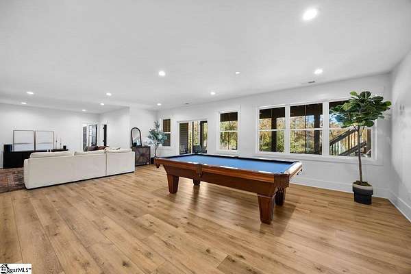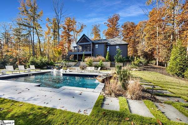 For more info or to request a private showing, contact John Schroder at (864) 367-2539. Welcome home to a unique oasis in the heart of chic Travelers Rest, SC with approximately 7 acres of privacy and natural beauty to cherish. Serenity abounds as you wind down the lengthy driveway with gorgeous water feature to a nearly new modern/craftsman home constructed in 2021 perched above immaculate grounds and breathtaking Upstate vistas. Step inside to be greeted by stunning hardwood floors throughout and an open concept that simply feels like home. Terrific floorplan seamlessly blends the great room, kitchen, and dining area to create a dynamic environment perfect for family and entertaining guests. Tremendous naturally light exposure produces a warm and inviting environment to enjoy the good life. Ever-desirable primary bedroom on main level features spacious dimensions and ensuite spa-like experience with garden tub and huge separate shower with rain head and convenient dual vanities along with massive walk-in closet. Nearby you will find the dedicated laundry room perfectly situated just inside the 2 car garage and steps from the primary bedroom and kitchen. Family and friends will love the kitchen space boasting quartz countertops and the latest trend of matching panel appliances and center island with well-positioned dining space. Voluminous vaulted ceiling, wall of windows with "wow" views overlooking the pristine pool and hardscape , and gas log fireplace are all yours from within the great room. Step outside and bring nature just a bit closer to appreciate your evening wine or morning coffee from the screened porch with dual overhead heaters or keep flowing to the open deck space providing some of the most dramatic views that you could dream of. Your jaw will drop when you behold the celebrity-level pool, hardscape, outdoor fire pit, and sodded manicured grounds. There is simply nothing like it on the market today. Back inside, the highly functional floorplan provides excellent separation with a 2nd guest bedroom on the opposite side of the main level with hex tile bathroom and the latest color palette. The story continues as you transition to the finished basement level where you are greeted by a secondary kitchen along with massive bonus room perfect for a a variety of uses exhibiting the same spectacular views as the main level. Sliding glass doors off the bonus room pull you outside to an additional covered patio and lead the way to the saltwater pool and fire pit straight out of a magazine centrally located within 7+/- majestic acres. Words cannot describe how well this space is tied together and how good life can be having all of this at your fingertips! Continuing within the finished walkout basement, you find tons of storage space and access to mechanicals adding to the functionality and ease of living. 2 additional bedrooms, one of which currently being used as a home office, share the third full bathroom featuring its own cedar sauna and walk-in standup shower. This floorplan is simply one of the best in terms of living big while simultaneously being efficient. Minutes to Main St in Travelers Rest where some of the hidden gems of the local shopping and dining scene are located as well as access to the famed Swamp Rabbit Trail and a short drive to downtown Greenville. This property represents incomparable value for anyone seeking a phenomenal lifestyle defined by privacy and convenience without the oversight of an HOA. Enjoy life as it was meant to be lived from this nearly new home in turnkey condition ready for your memories. Don't miss your opportunity own one of the most special properties available in all of Greenville county!