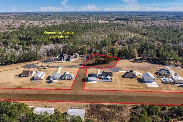 Discover a rare opportunity to build your dream home in an exclusive private airpark community in Horry County, South Carolina. This exceptional homesite is ideally positioned between Loris and North Myrtle Beach, offering the perfect balance of peaceful rural living and convenient access to the Grand Strand. Designed for aviation enthusiasts, the community features a private, well-maintained landing runway with dedicated taxiways providing direct access to each residence. Every homesite is planned to accommodate a private airplane hangar, allowing you to taxi from your hangar straight to the runway with ease. Enjoy wide-open spaces, scenic surroundings, and the freedom of fly-in living, all while being just a short drive from North Myrtle Beach's beaches, golf, dining, and entertainment. Whether you envision a full-time residence or a unique retreat, this lot offers a distinctive lifestyle that seamlessly blends aviation, privacy, and coastal convenience. A truly unique offering for pilots seeking space, freedom, and connection--on the ground and in the air. Ask your agent for a copy of restrictions for the community.