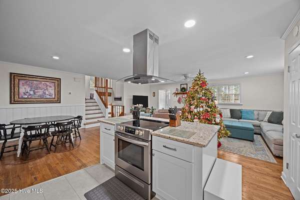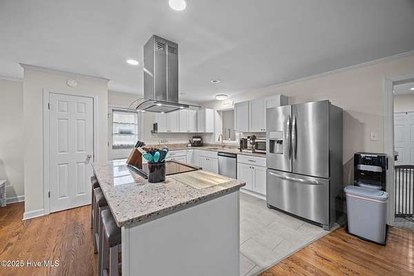 - Blinds/Shades, Ceiling Fan(s), Entrance Foyer, Kitchen Island, Walk-In Shower