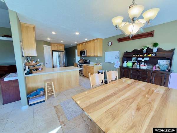 Welcome to this inviting 2007 stick-built home offering 4 bedrooms, 2.25 baths, and a den on a spacious 1.5-acre lot in a peaceful, sought-after neighborhood. Designed for both comfort and functionality, this home blends open living with the beauty of Wyoming's wide-open spaces. Step inside to find a bright and welcoming floor plan that offers plenty of room for everyday living and entertaining. The den provides flexible space--perfect for an office, hobby room, or cozy reading nook. The primary suite is a true retreat, featuring a garden tub, separate shower, and a private door leading to the back deck--the perfect spot to enjoy quiet mornings or relaxing evenings under the open sky. The kitchen and dining area flow seamlessly to the outdoor deck--ideal for gatherings or soaking in the amazing views. The property's sprinkler system currently waters the front yard, back yard, flower beds and the garden spot- keeping your yard and garden spot lush all season long. Sprinkler system can be extended further as buyer sees fit. There's ample space for animals, future outbuildings, or additional outdoor amenities, allowing you to tailor the land to fit your lifestyle. Enjoy the tranquility of country living while still being close to town conveniences--a rare combination of space, comfort, and setting. Call Broker, Bobbi Brandon, 307-747-5059 to schedule a showing or for more information.