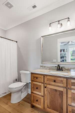 - Bookcases, Breakfast Bar, Built-In Features, Cathedral Ceiling(s), Ceiling Fan(s), Crown Molding, Double Vanity, Eat-In Kitchen, Granite Counters, High Ceilings, Kitchen Island, Open Floorplan, Pantry, Primary Downstairs, Separate Living Quarters, Split Bedrooms, Walk-In Closet(s), Walk-In Shower