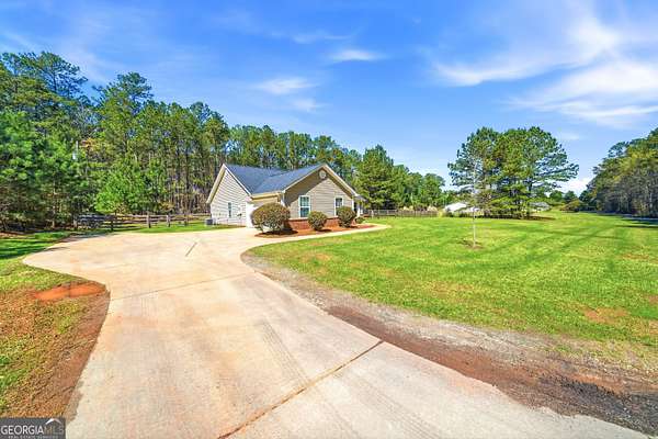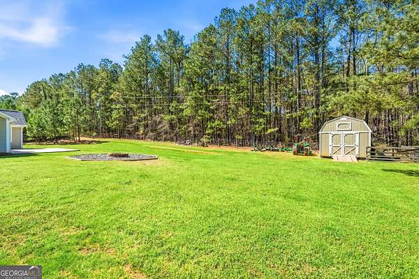 SEE THE STARS AT NIGHT from your own quiet slice of Senoia-then let the sun shine in every morning as natural light pours through the wall of rear windows. Set on a private, peaceful lot with plenty of acreage behind you, this home delivers that country calm feeling the moment you pull in. Out back, it's easy to picture weekends on the oversized patio, evenings around the fire pit, and a wide stretch of green lawn framed by a charming 4-board fence-especially in the late afternoon when the light streams through the trees and dances across the backyard. Inside, the home has been refreshed with new interior paint-and the big-ticket updates are already done: a BRAND NEW ROOF and an HVAC system that's less than two years old. Step into a welcoming foyer that opens to a vaulted great room-bright, airy, and perfect for cozy nights in or a house full of friends. The kitchen has been updated with painted cabinets, new hardware, granite countertops, and newer appliances (refrigerator, microwave, dishwasher), plus a sunny breakfast area with a vaulted ceiling. A separate formal dining room gives you space for everything from everyday dinners to holiday gatherings. The primary suite is tucked to the right for privacy, featuring a vaulted ceiling, great natural light, a soaking tub, separate shower, double vanity, and a roomy walk-in closet. Secondary bedrooms are updated too-one with a walk-in closet, the other with a double closet-and you'll even find details like tall wainscot that add extra character. The garage includes a storage rack system that stays (hello, organized holiday decor). Need space for tools and toys? You've got a 16' x 11.5' outbuilding with extra height for storage-perfect for a zero-turn mower and yard equipment. And here's the best part: you get the peace of the country without giving up the fun. You're just 1.6 miles to downtown Senoia for favorite spots and Alive After 5 evenings, and about 1.1 miles to Lake Meriwether/Merimac events and outdoor enjoyment. Come see it in person-take a deep breath, look up at the stars, and you'll understand why this one simply feels like home.