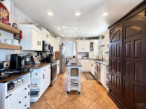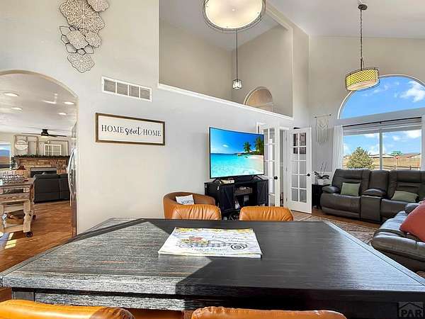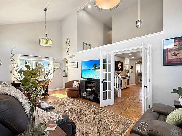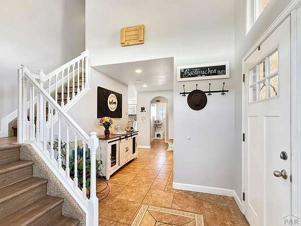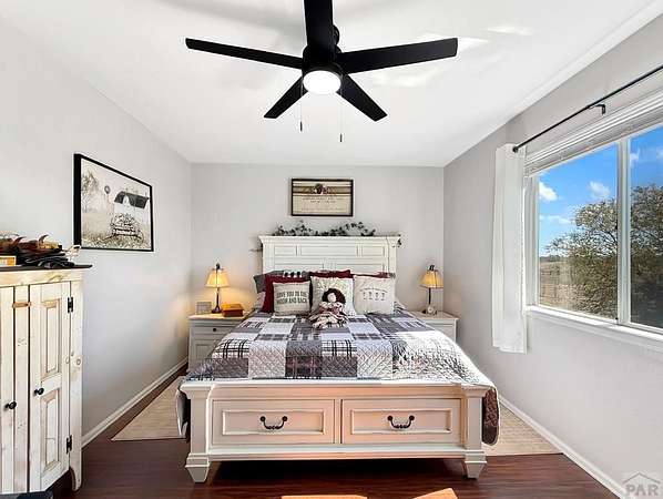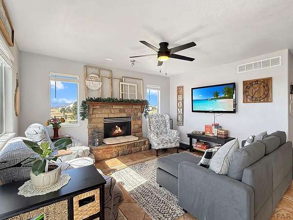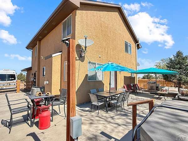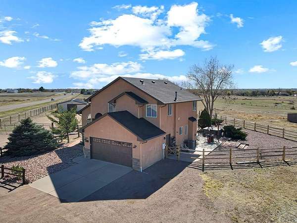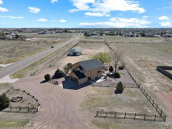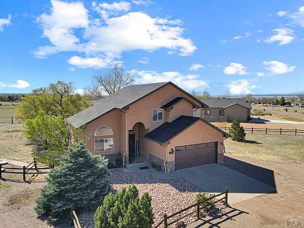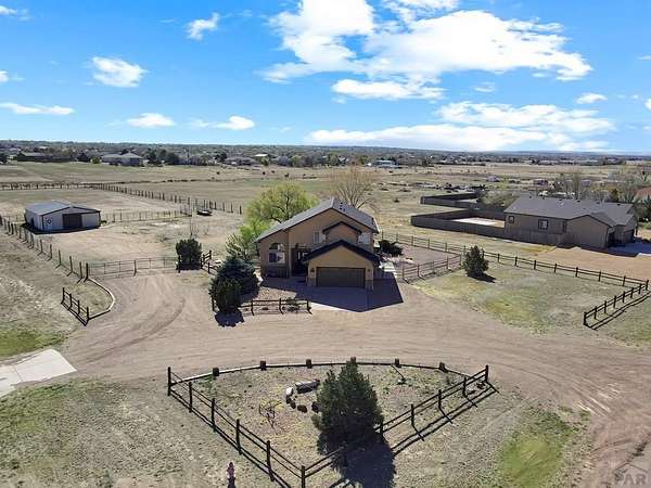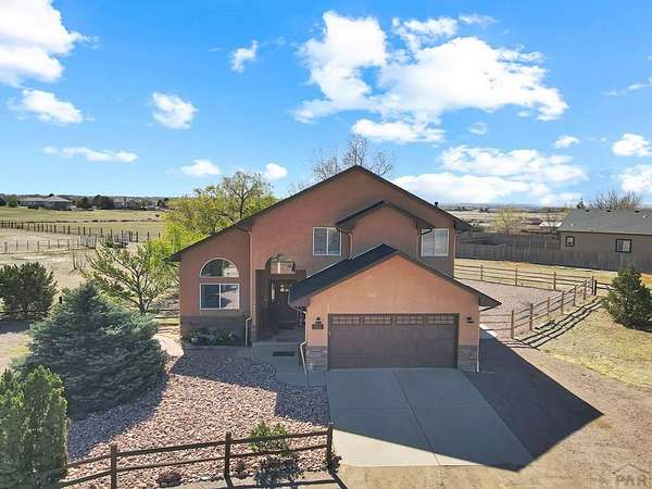 What a rare find! Come see this gorgeous horse property, located on 2.57 acres in Pueblo West. As you enter the home, notice the sun-drenched rooms and vaulted ceilings. The main level features 2 living spaces, both located conveniently off the kitchen, perfect for family time or entertaining. Walk outside to the open patio and relax in your fenced private back yard. Upstairs you will discover an opulent primary suite, complete with a 5 piece bath, and there are 2 additional bedrooms with a shared full bath. The fully finished basement offers yet another living space, 2 more bedrooms, and another full bath. Located on a huge corner lot, your horses will love their barn and the freedom that comes with all that acreage. This is truly a home to enjoy for a lifetime!